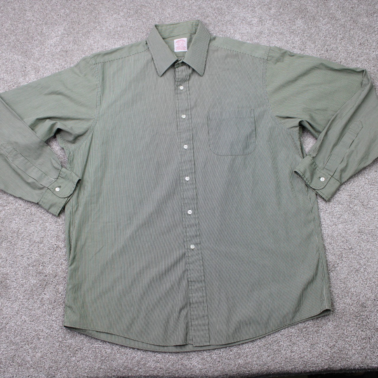 как выглядит Brooks Brothers Dress Shirt Mens 16 1/2, 6 Green/White Cotton Long Sleeve Button фото