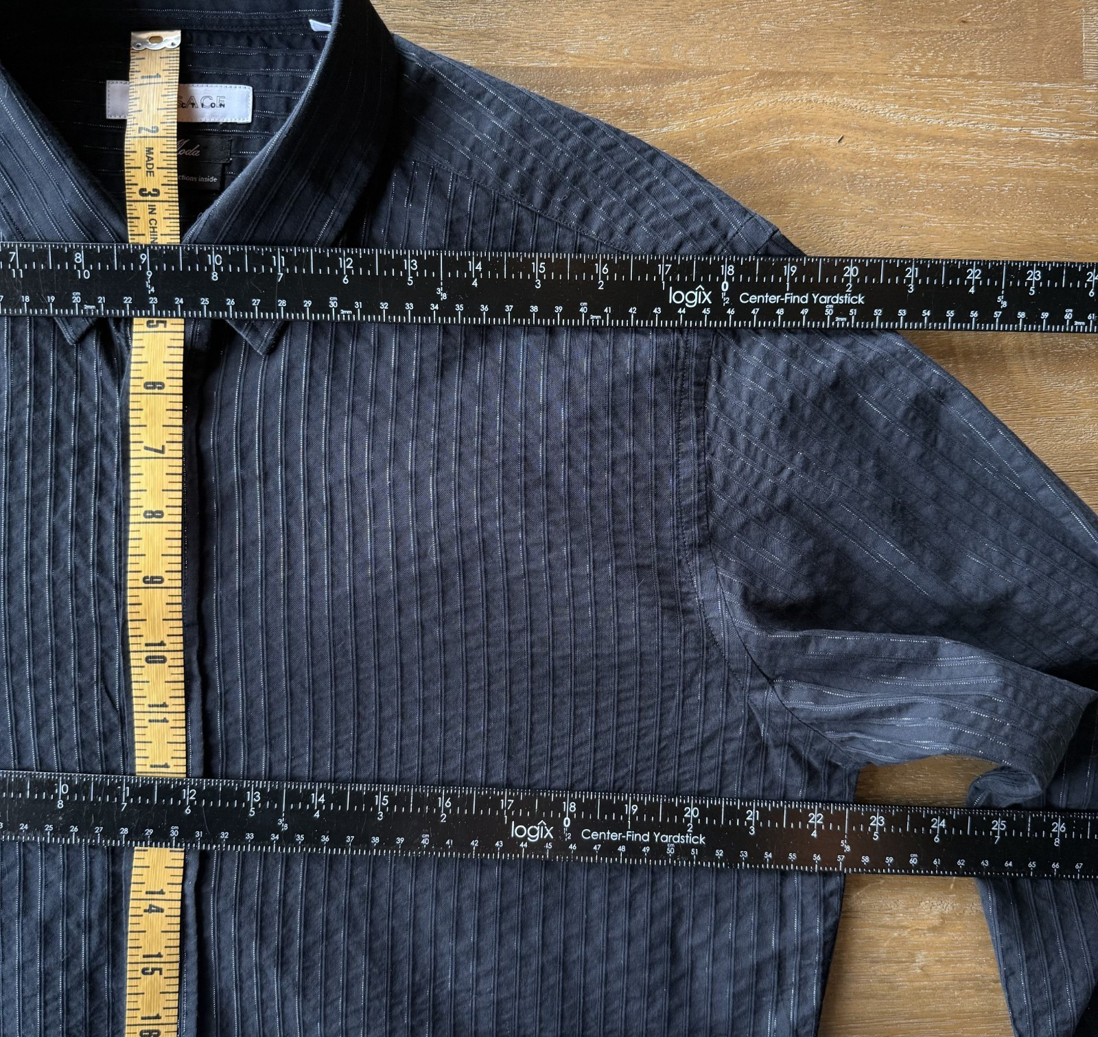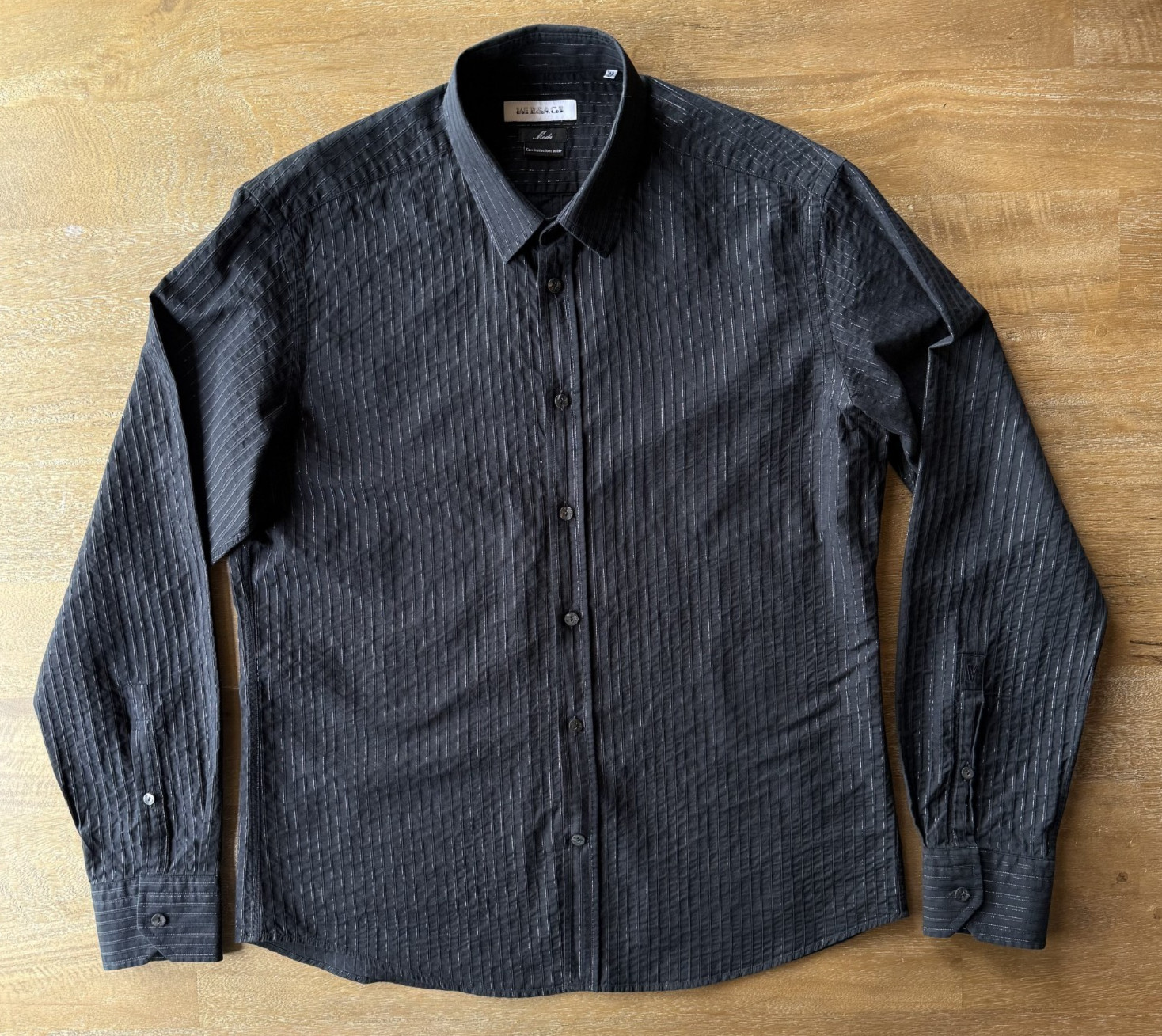как выглядит Versace Collection Moda / Trend Black Shimmery Silver Pin Stripe Button Up 43/17 фото