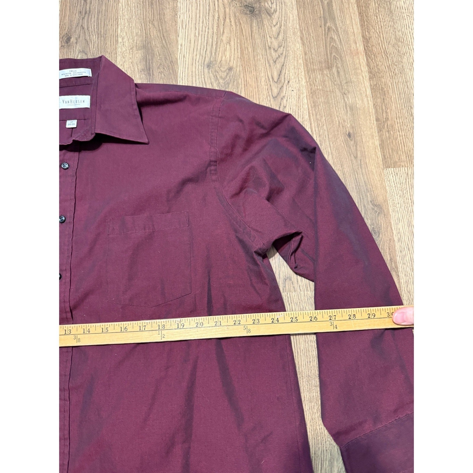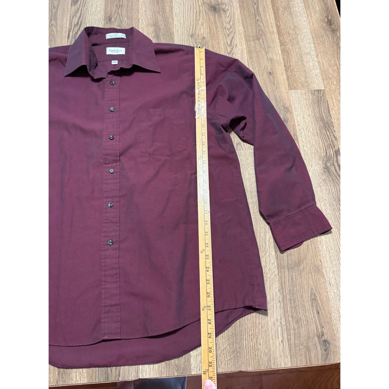 как выглядит Van Heusen Shirt Mens 17 34/35 Red Long Sleeve Button Up Dress Shirt FAILLE фото