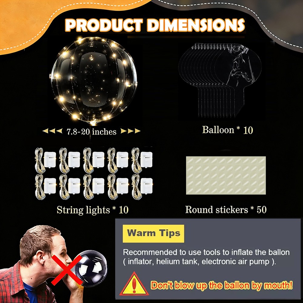10 PCS LED Light Up Balloons Clear Glow Bobo-Balloon for Birthday Wedding Party