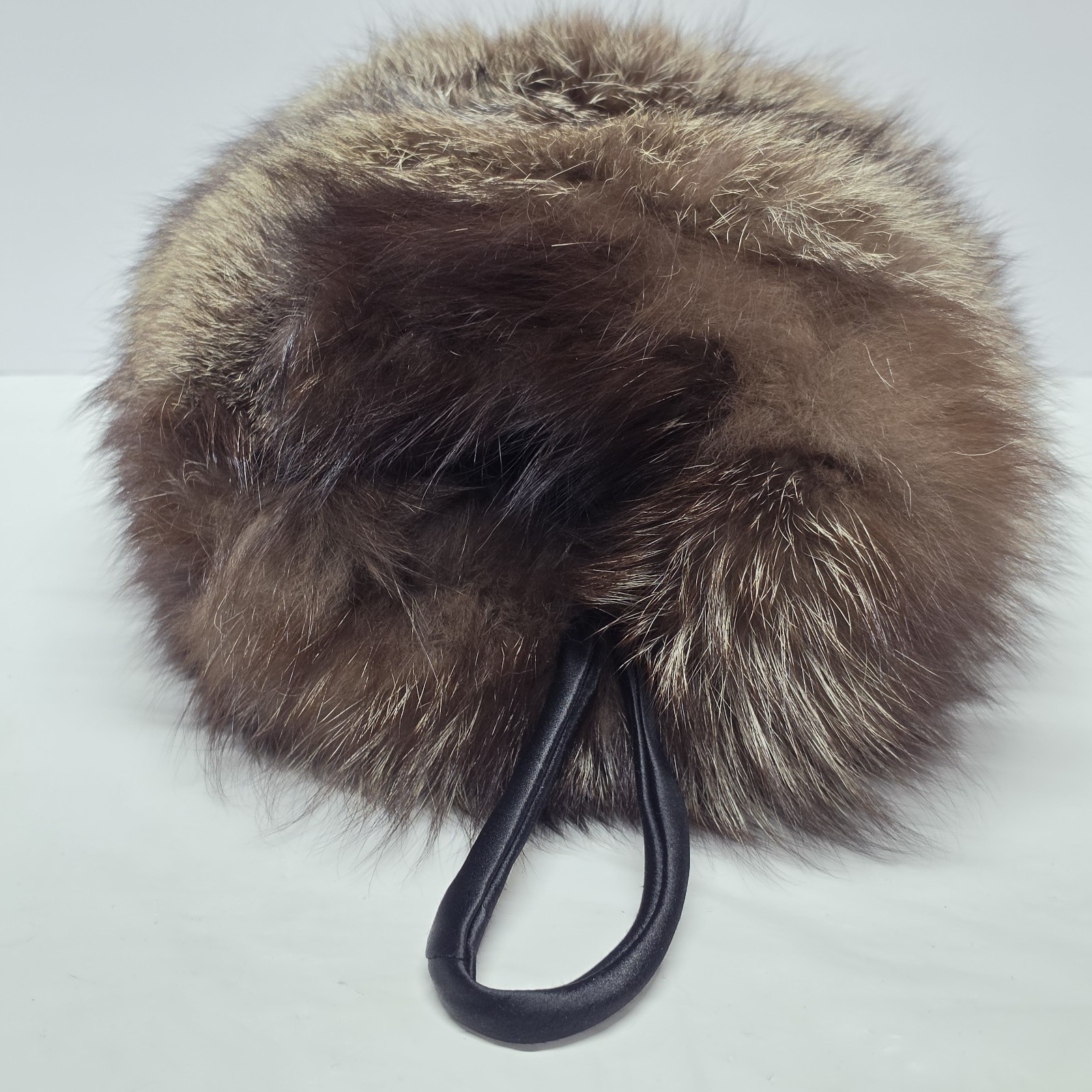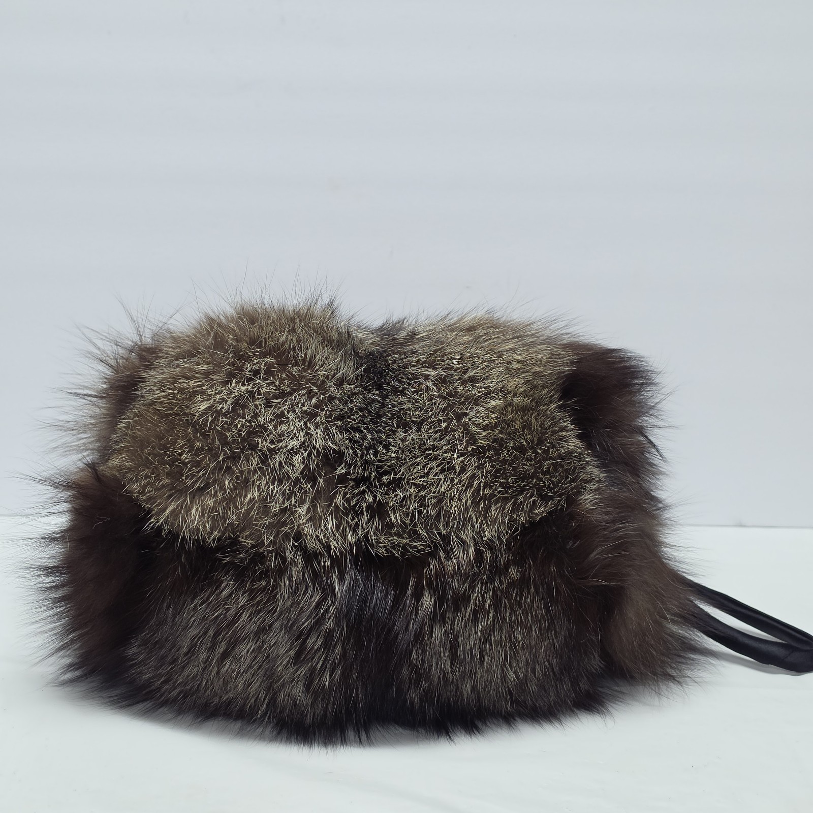 Vintage Real Fox Fur Ladies Hand Muff Satin Lining Wrist Strap Zip Pocket Inside