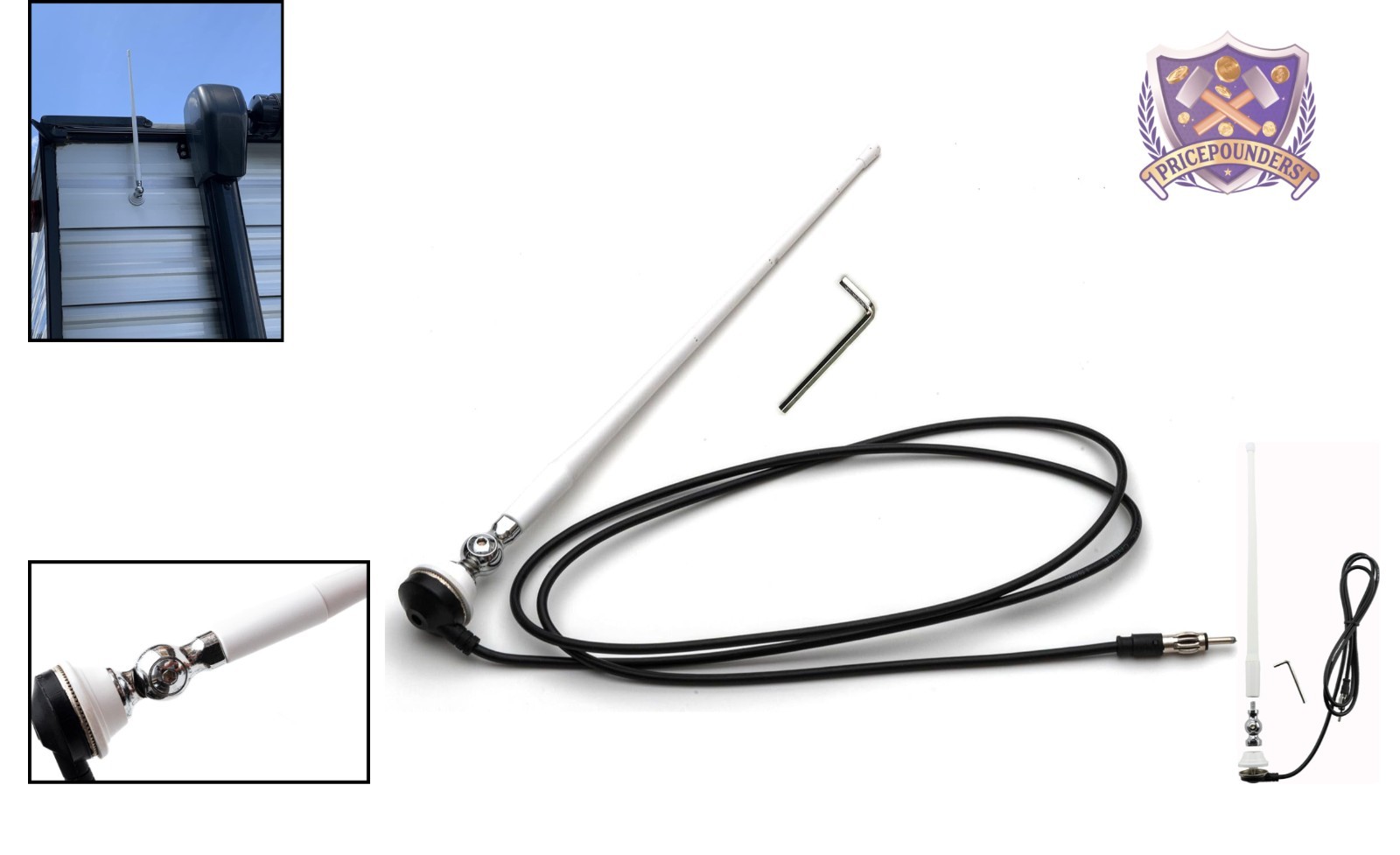 как выглядит Marine White Rubber AM FM Antenna Kit 15 Inch for Boat RV Camper Yacht фото