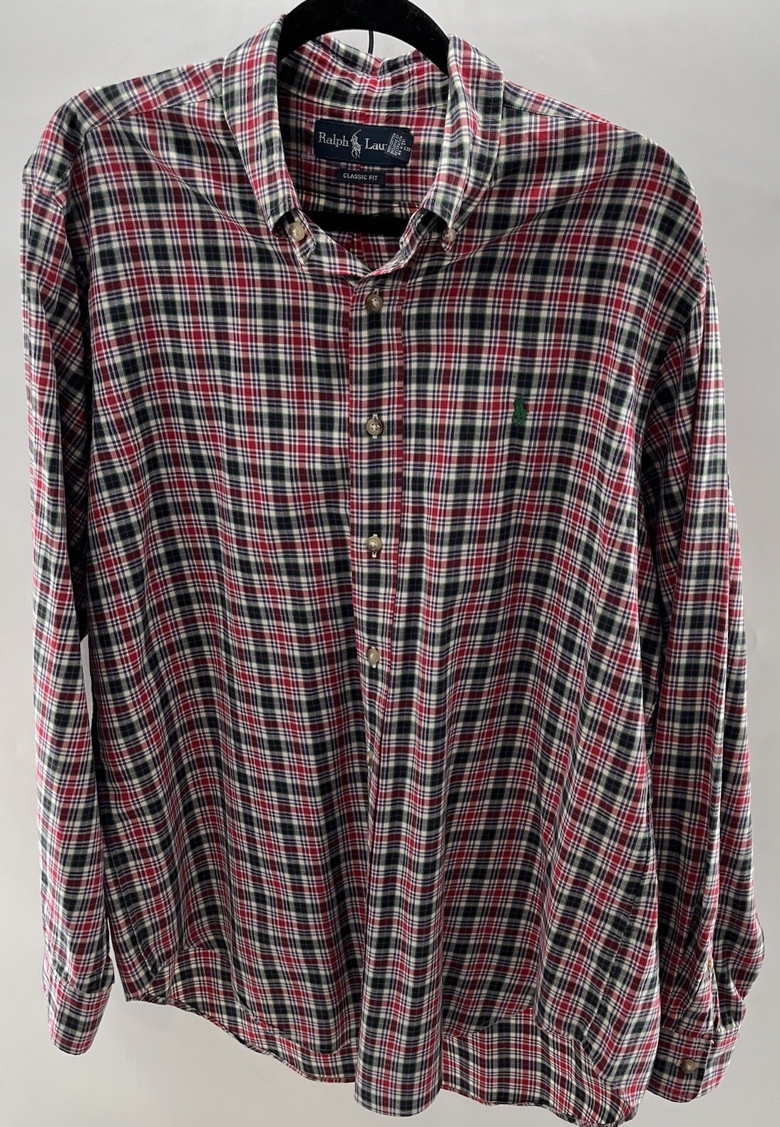 Polo Ralph Lauren Mens Long Sleeve Plaid Button Down Large 100 Cotton