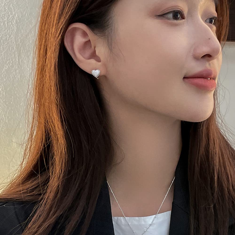 Dainty CZ Heart Shaped Real 925 Sterling Silver Sleeper Small Hoop Cartilage...