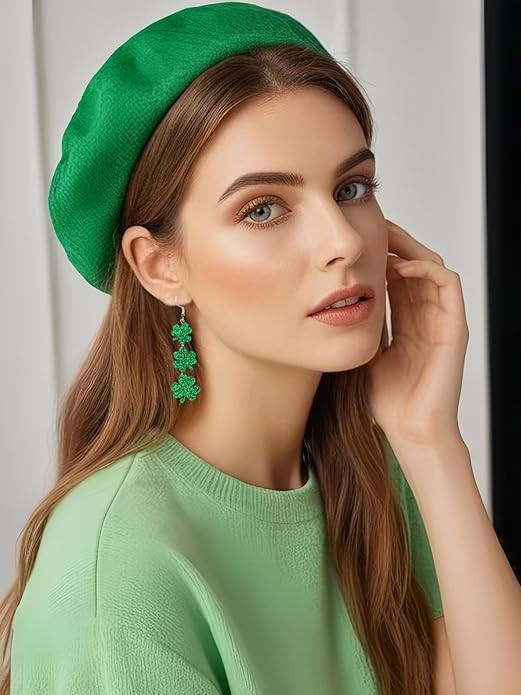 St. Patrick's Day Green Earrings for Women,Irish Medium, clover