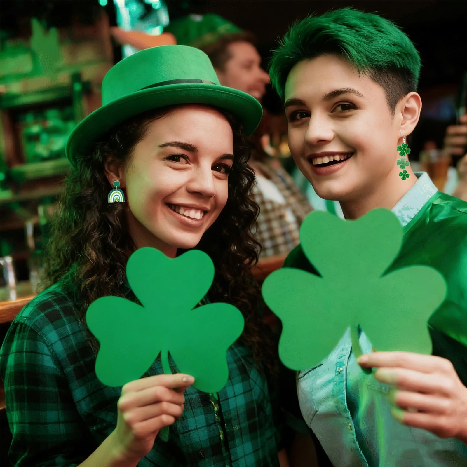 St. Patrick's Day Earrings for Women - Irish Shamrock Acrylic 3 inches, Green