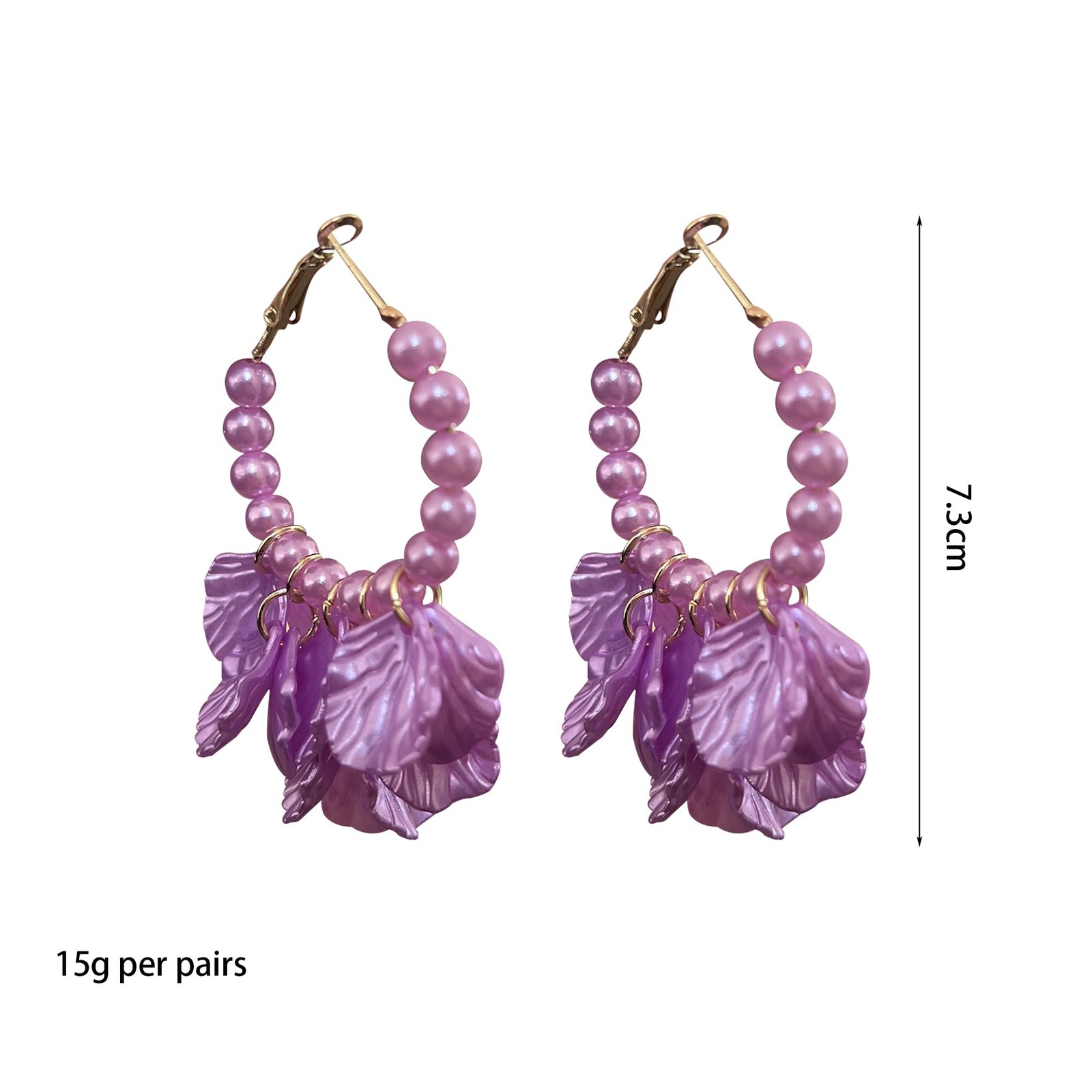 Anmpab Pearl Petal Hoop Earrings for Women Circle Shell Large, Violet