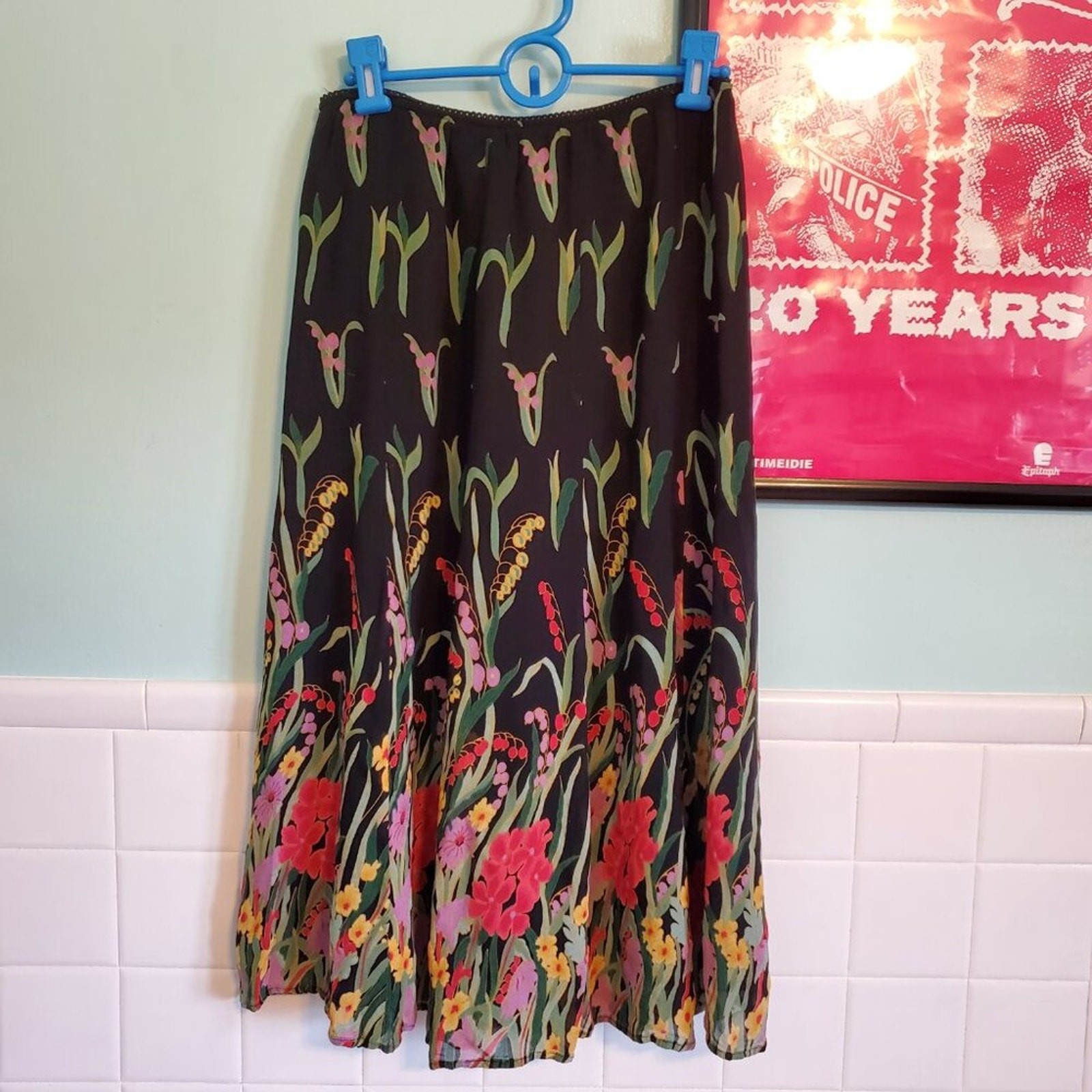 как выглядит Vintage Y2K Black Colorful Whimsical Floral Flower Pattern Maxi Skirt Size 8 фото