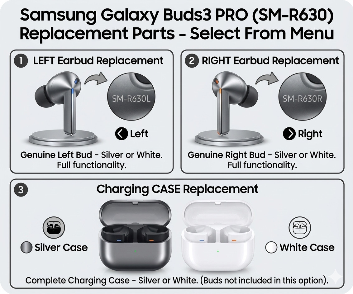 Samsung Galaxy Buds FE SM-R400 Replacement Pieces: Pick Your Part L / R / Case