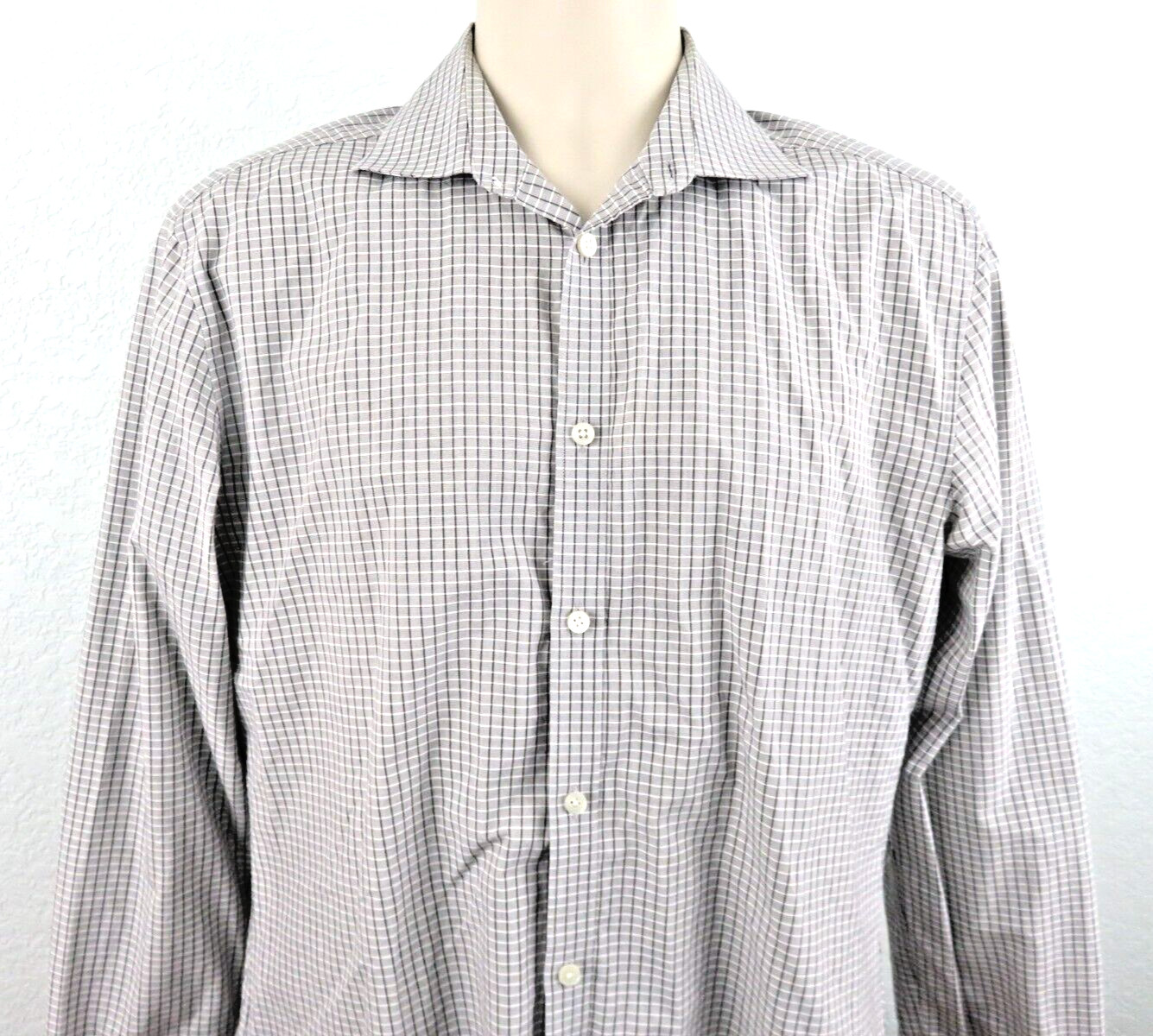 John Varvatos Men's Slim Fit Gray Striped LS Button Down Shirt 15 1/2 34/35