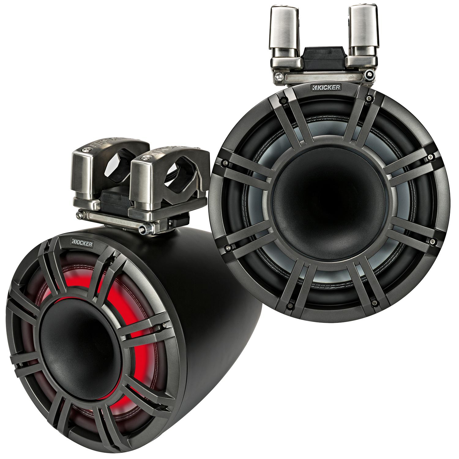 как выглядит Kicker 44KMTC11 11" Black Horn-Loaded Tower Speakers 1200 Watt Marine Amp w... фото
