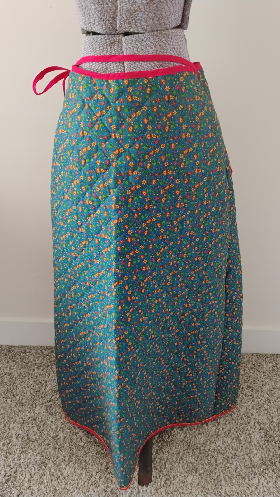 как выглядит VTG 70s Retro Floral Quilted Maxi Wrap Skirt Flower Power Boho Hippie Lg Pocket фото