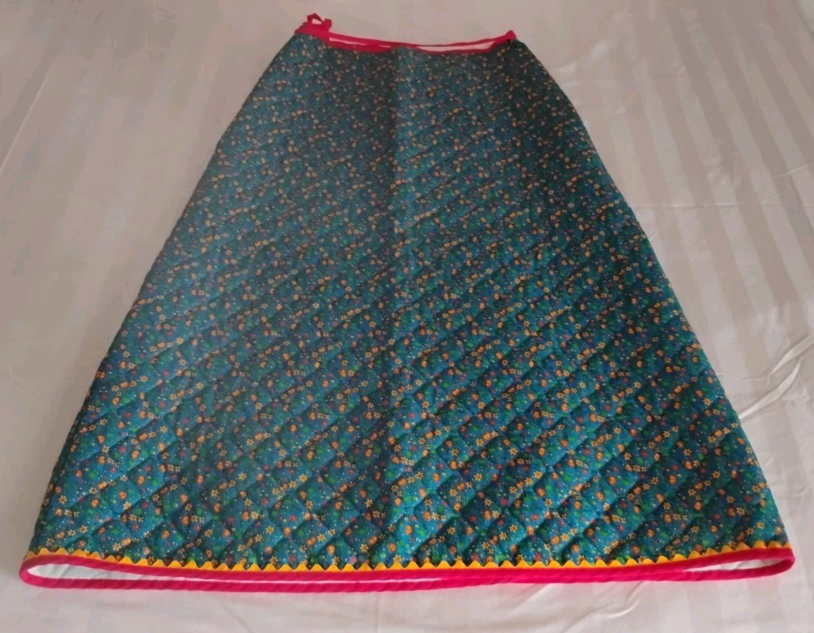 VTG 70s Retro Floral Quilted Maxi Wrap Skirt Flower Power Boho Hippie Lg Pocket