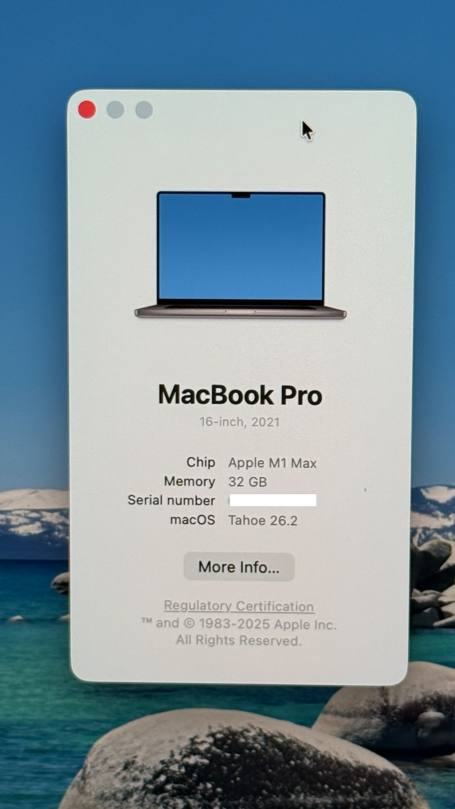 Apple MacBook Pro 16 2021 M1 Max 10xCPU 32xGPU 32GB Ram 4TB Drive - Good