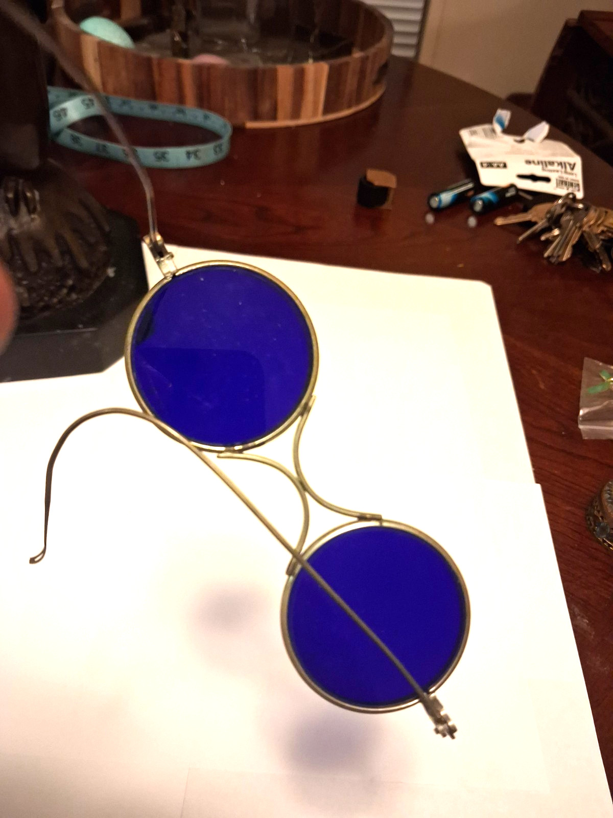 Vintage Steampunk Melters Foundry Goggles Glasses Cobalt Blue Lens
