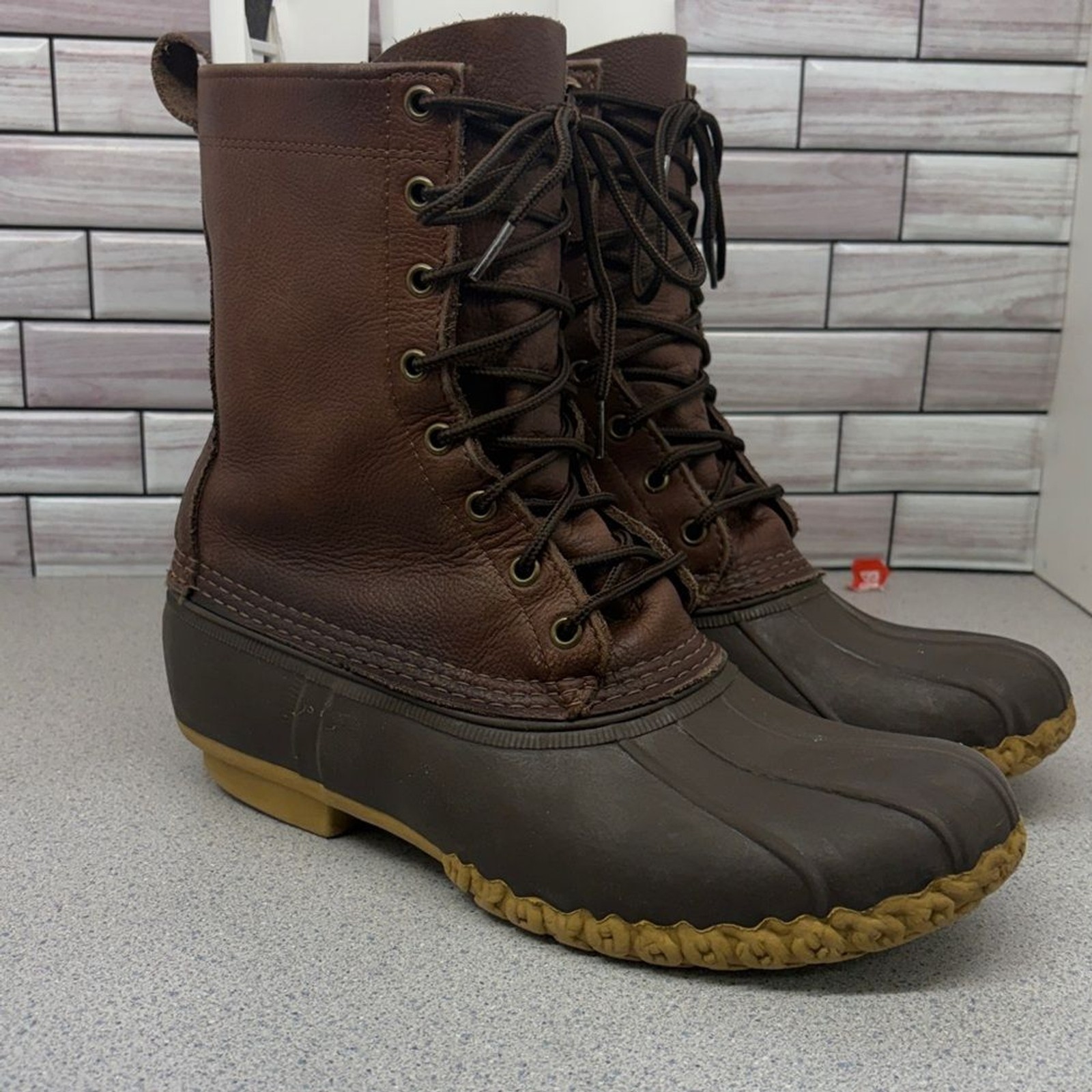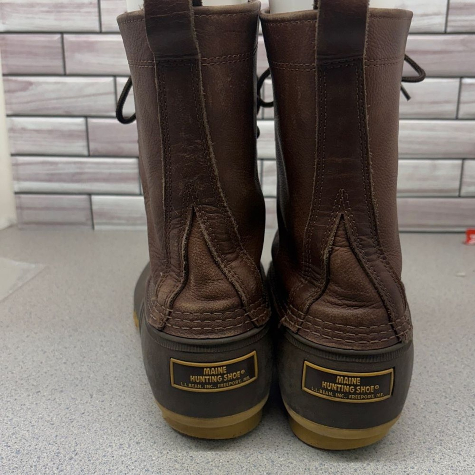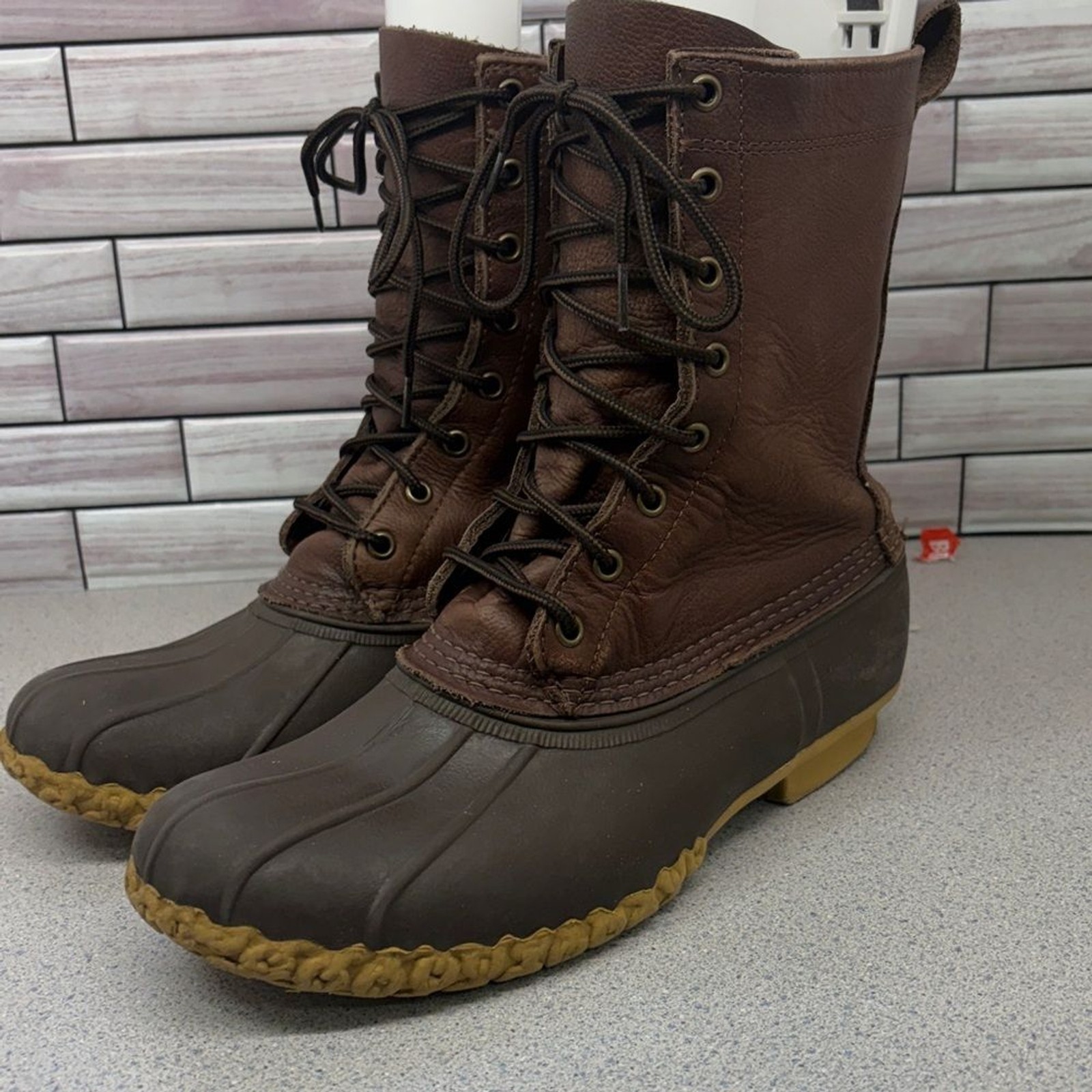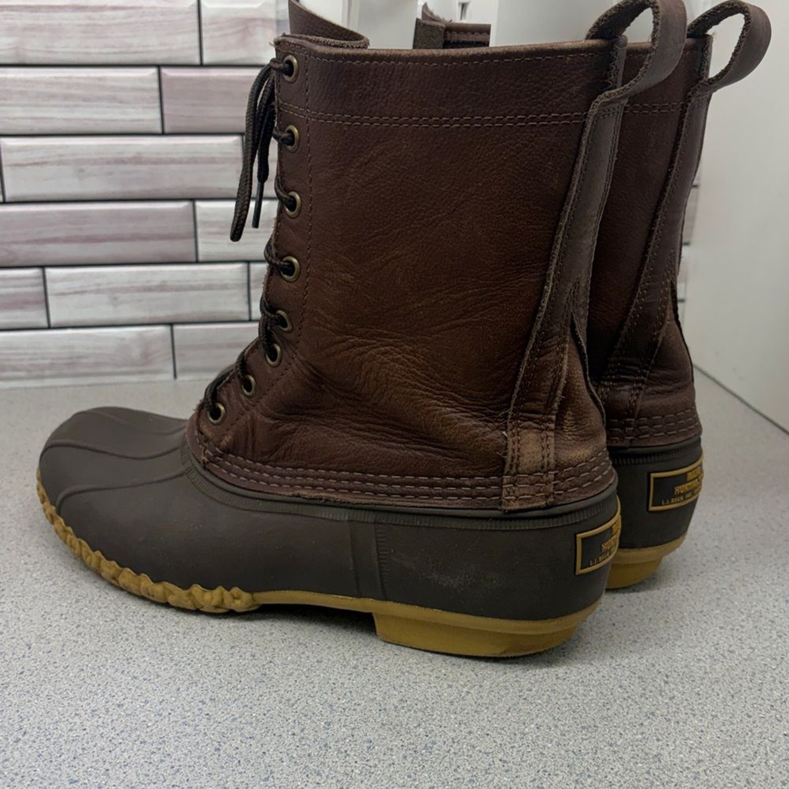 как выглядит LL Bean Inc Maine Hunting shoe Boot 10 dark Brown Leather size 9 fits up to 10 фото