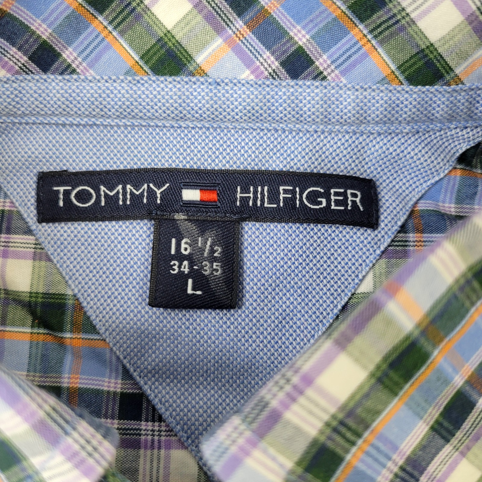 Tommy Hilfiger Shirt Mens Large 16.5 34-35 Plaid Pocket Button Down