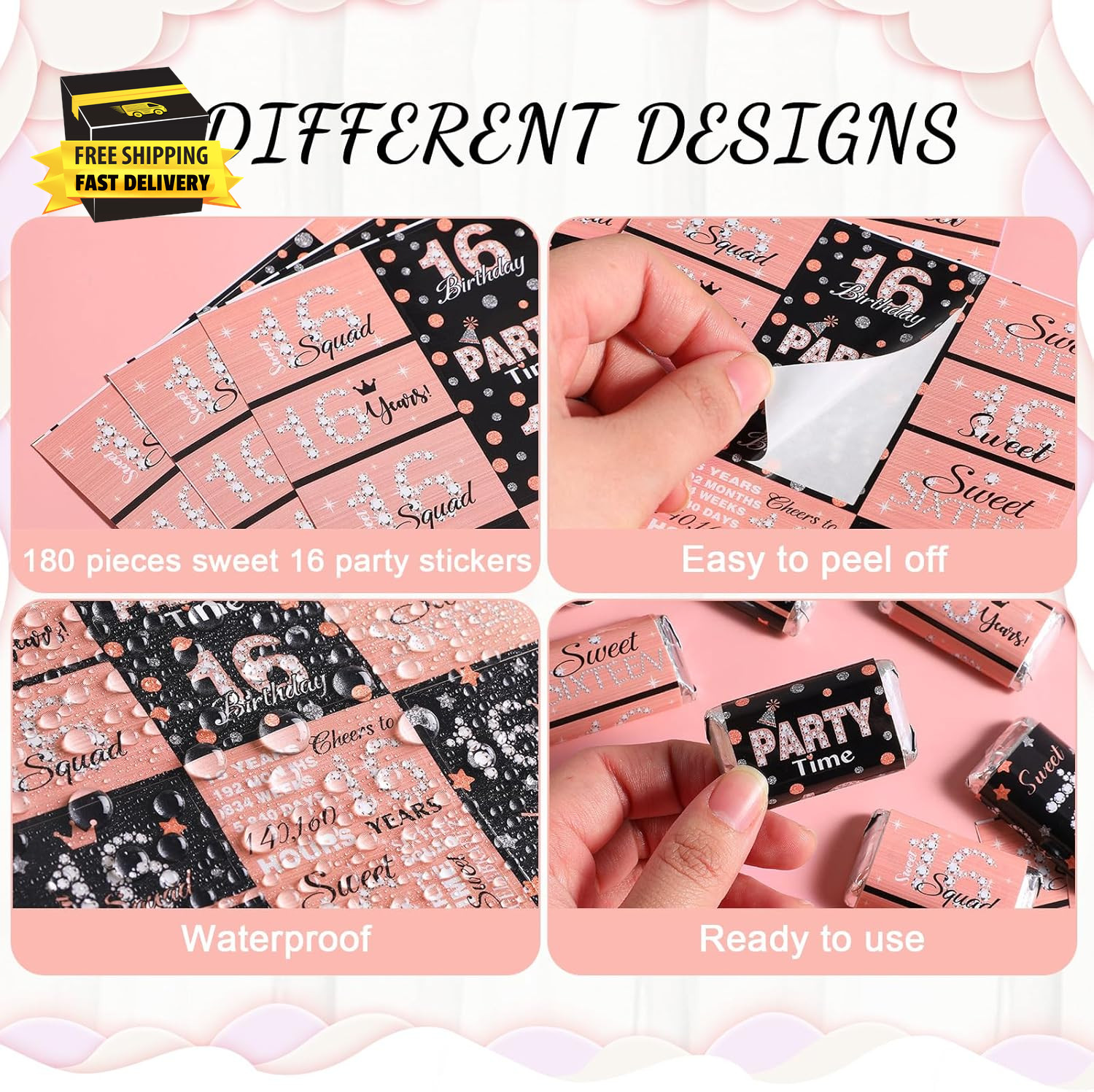 90 Pcs 16Th Birthday Candy Bar Wrappers Party Favors Chocolate Wrapper Stickers