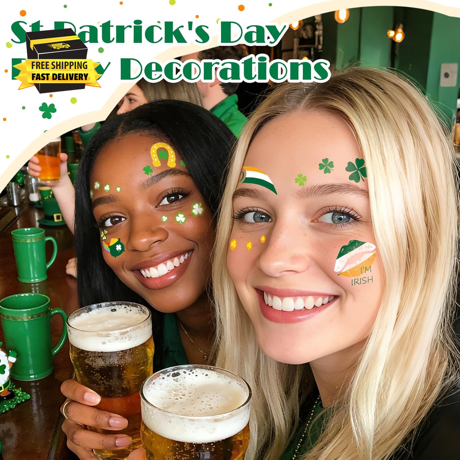 St Patrick'S Day Decorations, Waterproof Temporary Face Tattoos for Kids Adults