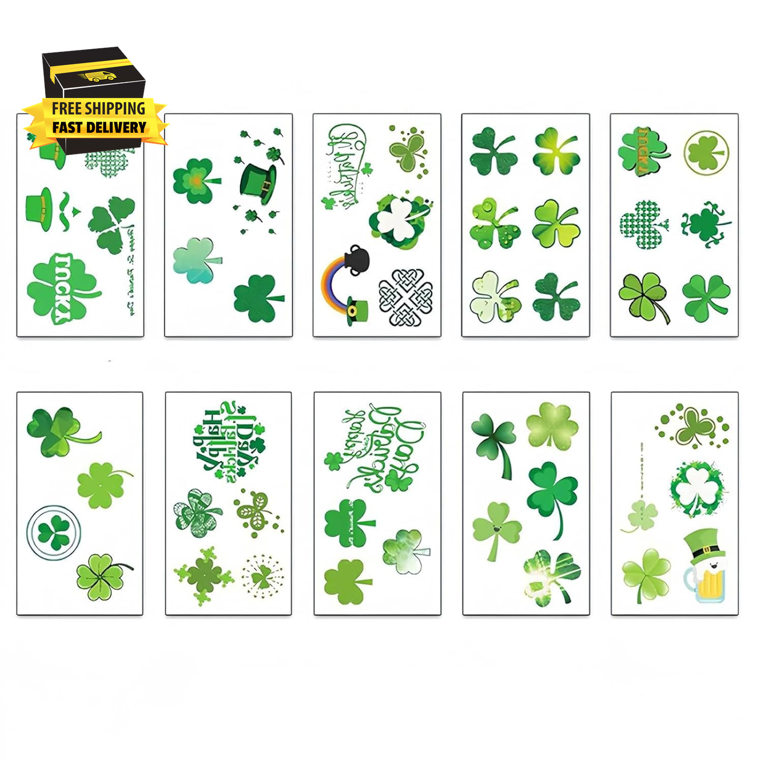 10 Sheets St. Patrick'S Day Shamrock Clover Temporary Tattoos Face Stickers, Wat