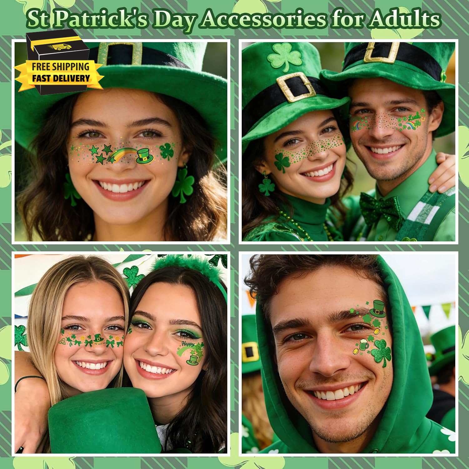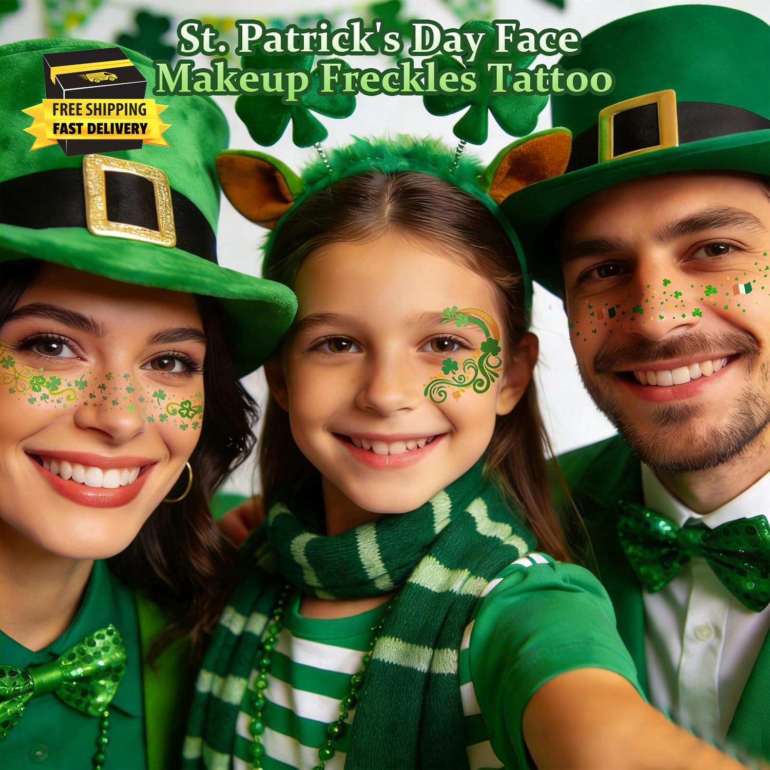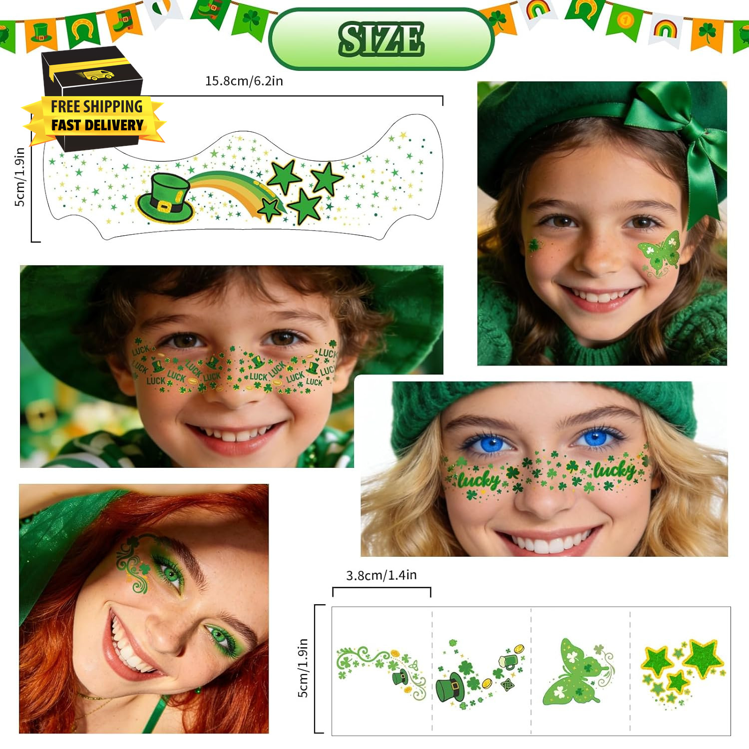 28 PCS St Patrick S Day Glitter Face Temporary Tattoos, Gold Green Freckles Sham