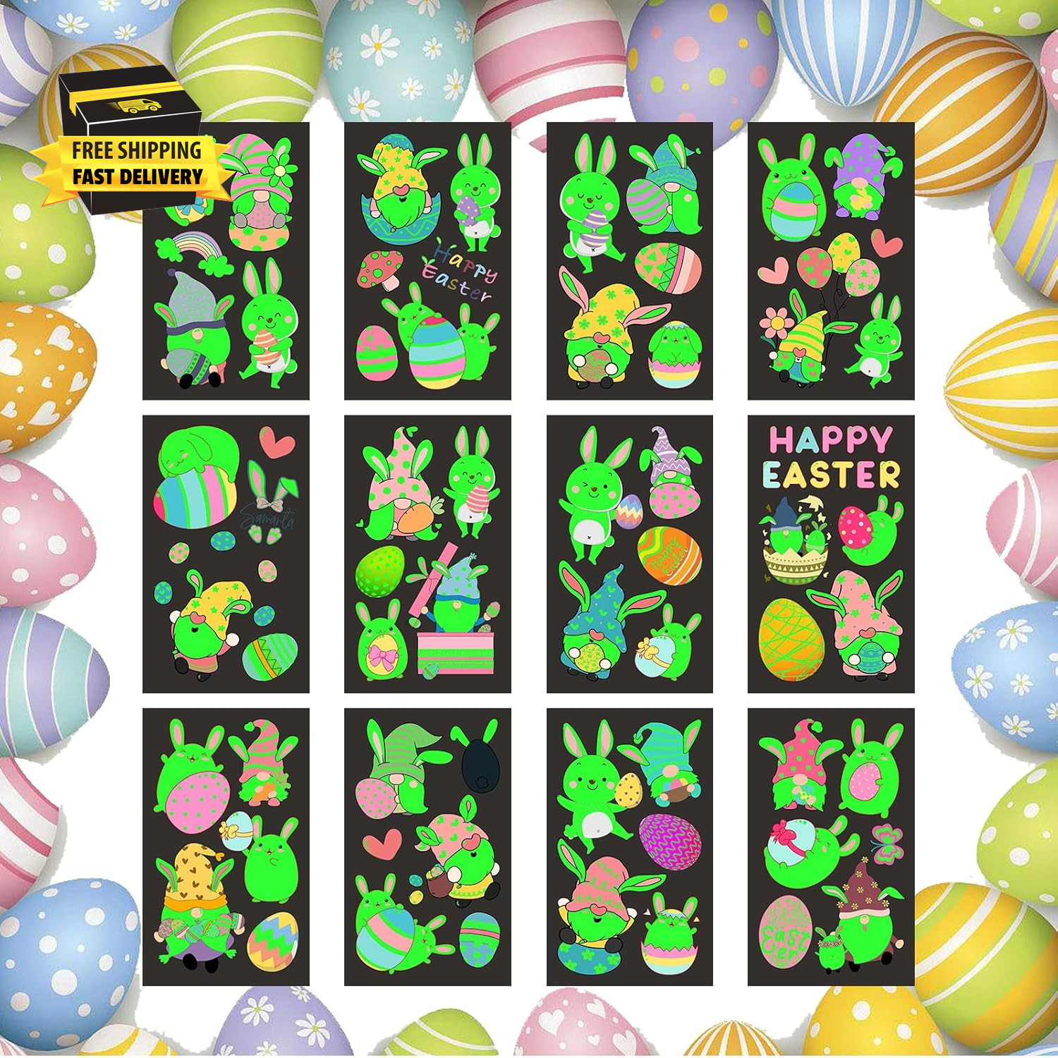 60 Pieces Easter Temporary Tattoos for Teens, Glow in the Dark Easter Basket Stu