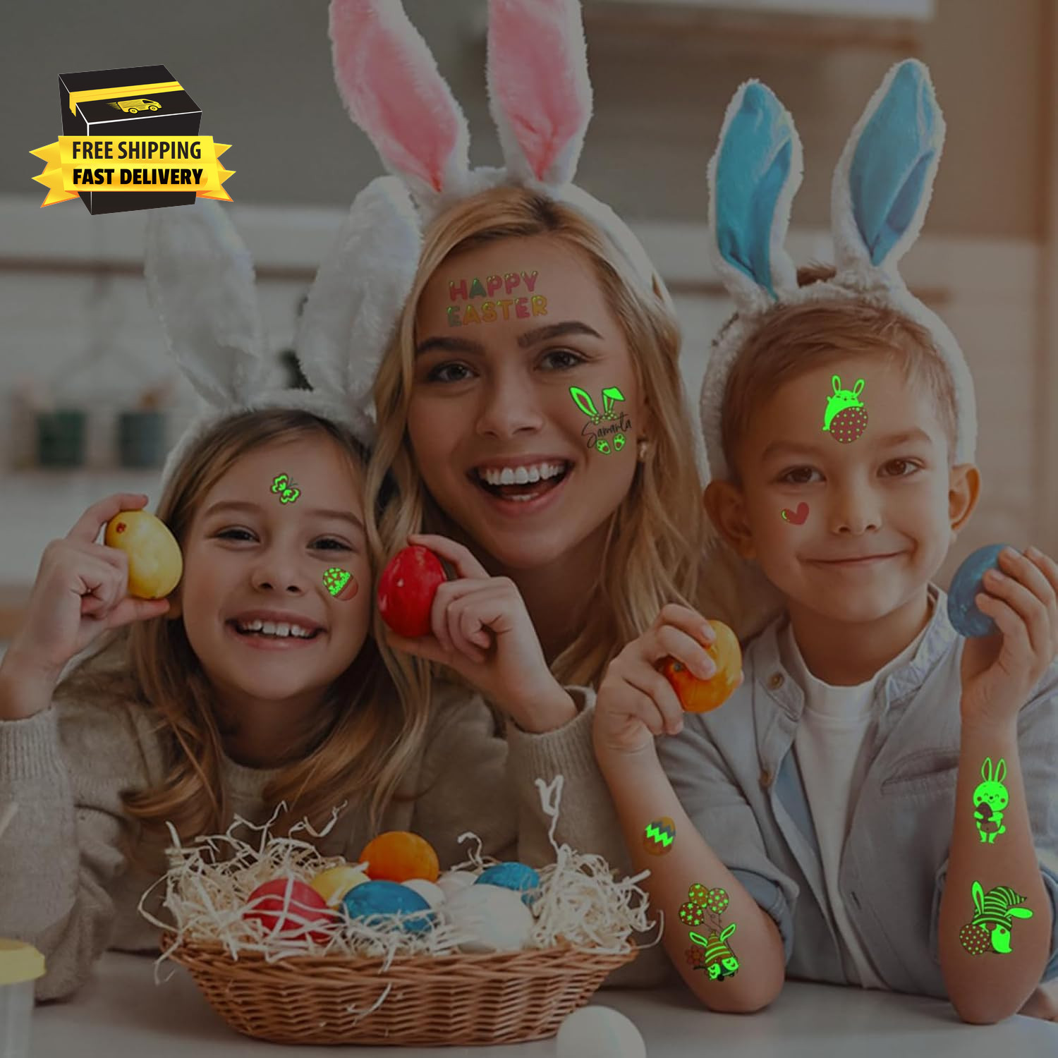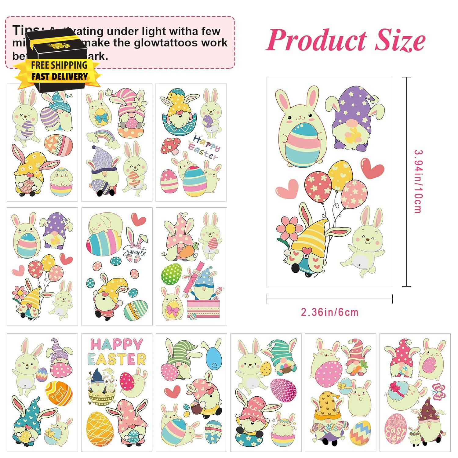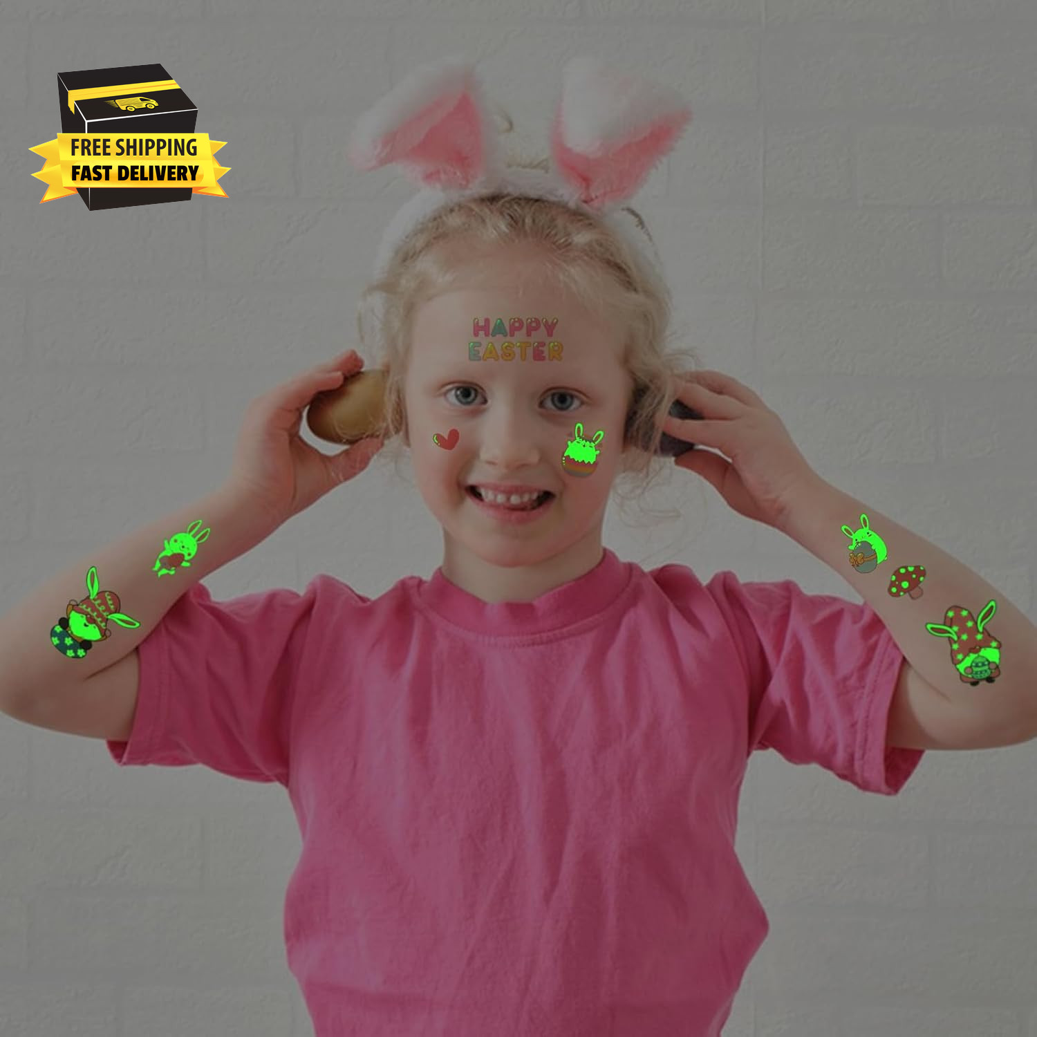 как выглядит 60 Pieces Easter Temporary Tattoos for Teens, Glow in the Dark Easter Basket Stu фото