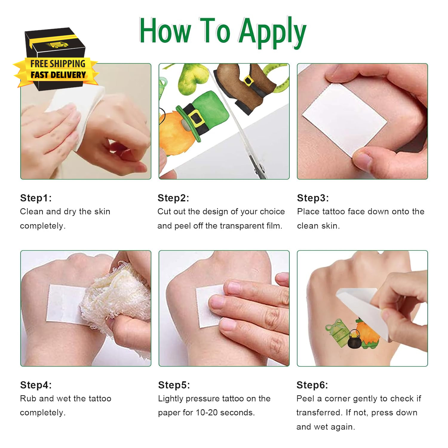 как выглядит 76 PCS St Patricks Day Tattoos, Watercolor Shamrock Hats Temporary Tattoos Stick фото