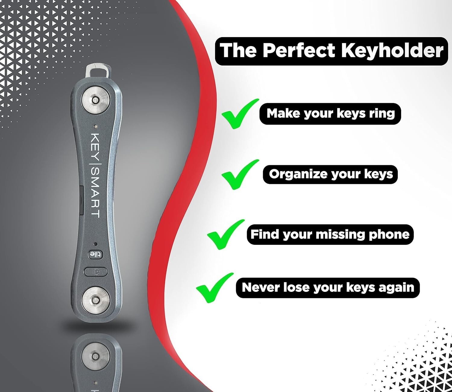 KeySmart Pro Key Holder W/ LED Light Tile Smart Technology Holds 14 Keys