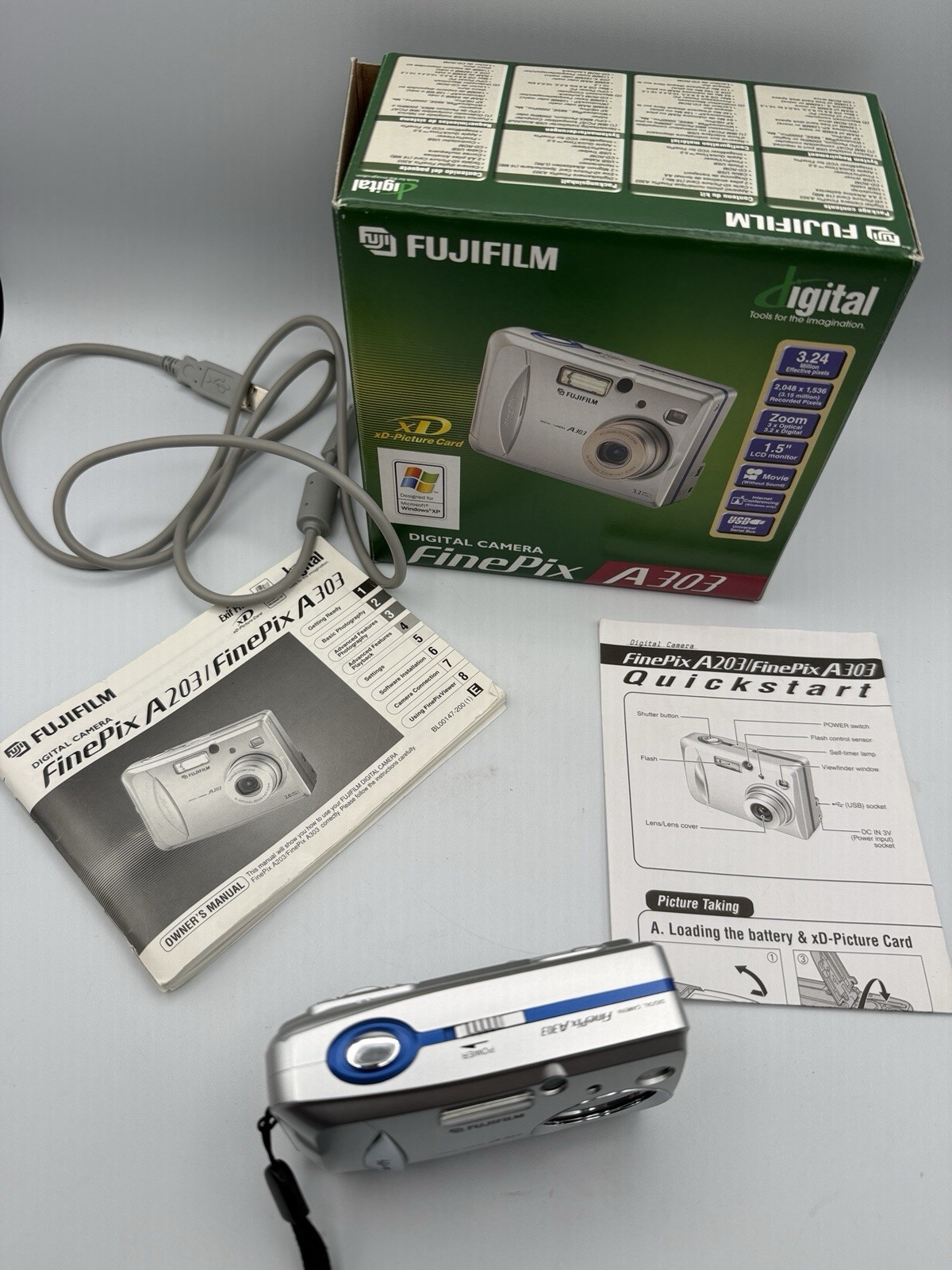 Fujifilm FinePix A303 3.2MP Digital Camera w/ Box xD Card Tested Working /ro