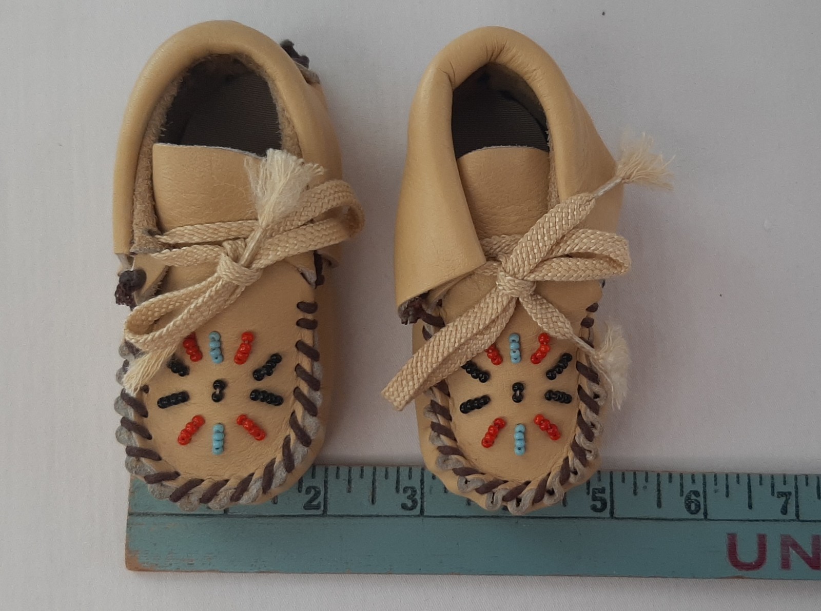 Vintage Native American Beaded Leather Baby Moccasins - Size 2 Soft sole