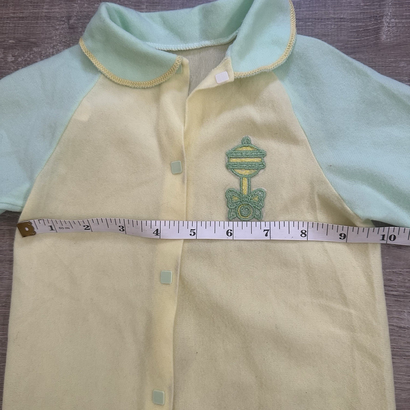 Vintage Baby Terry Cloth One Piece Button Up Pajama Sleeper USA Embroidered