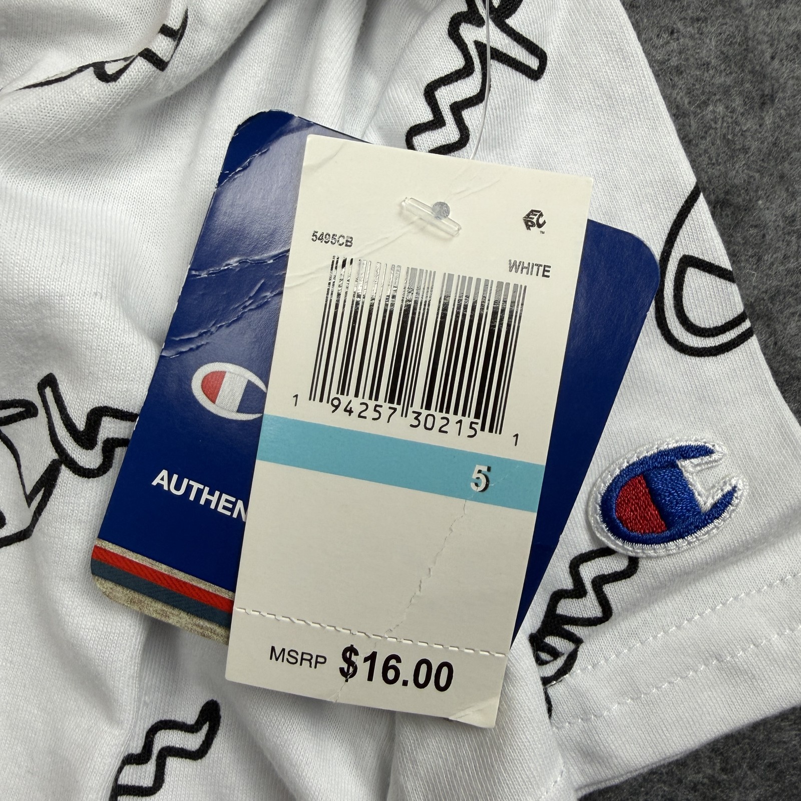 Champion Shirt Youth 5, White Allover Script Logo Graphic Tee Short Sleeve
