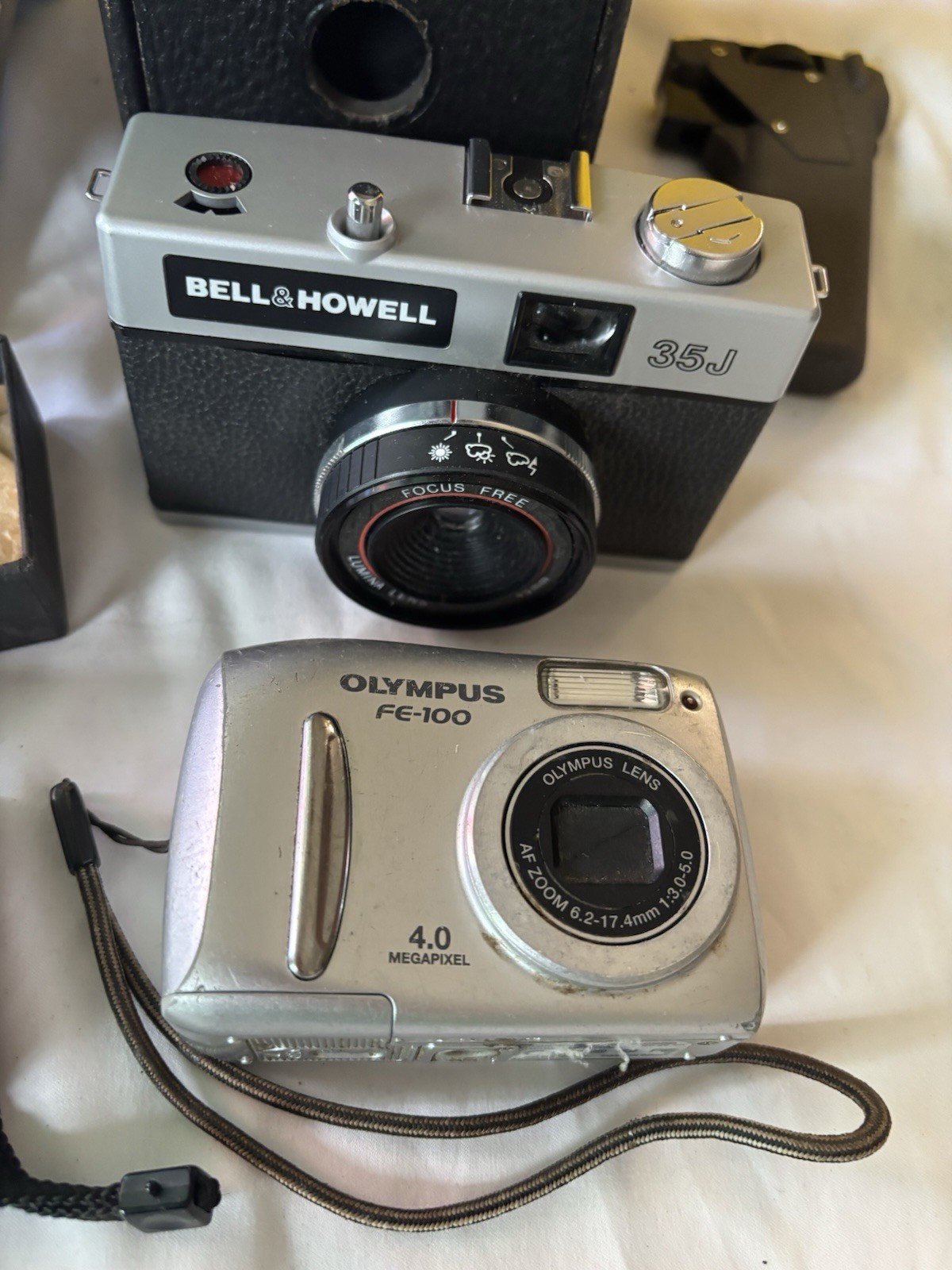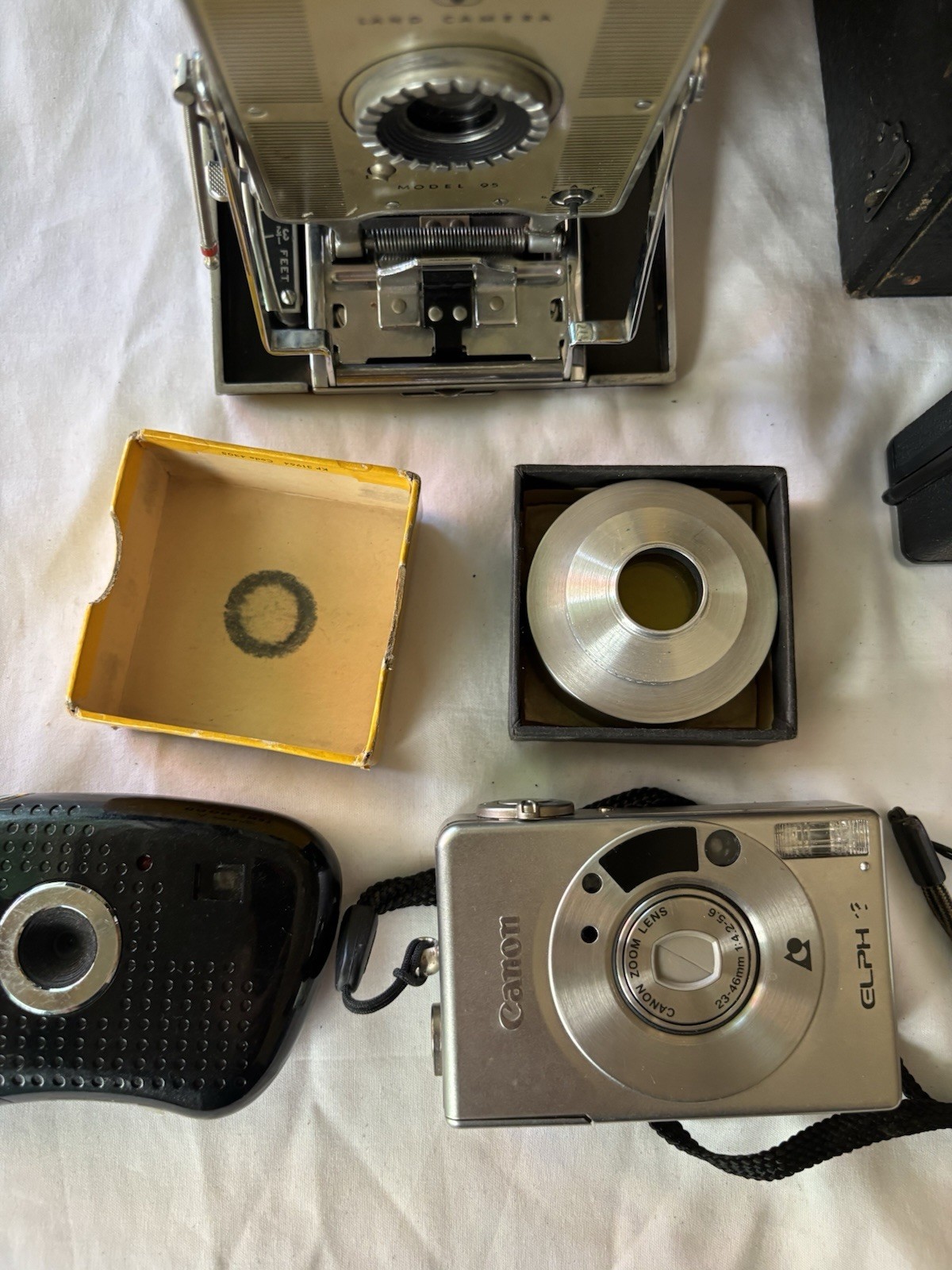 как выглядит Vintage Camera Lot Polaroid Brownie Box Camera Digital Elf Parts Untested фото
