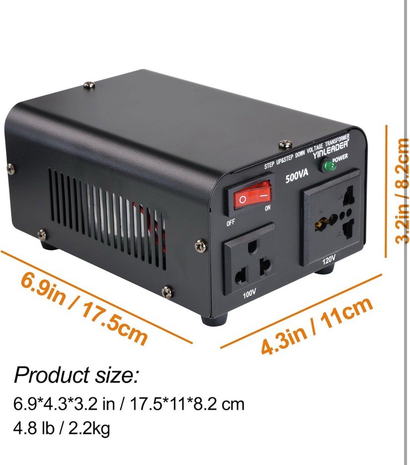 500W US to Japan Voltage Converter 120V to 100V Step Down Transformer JP-500