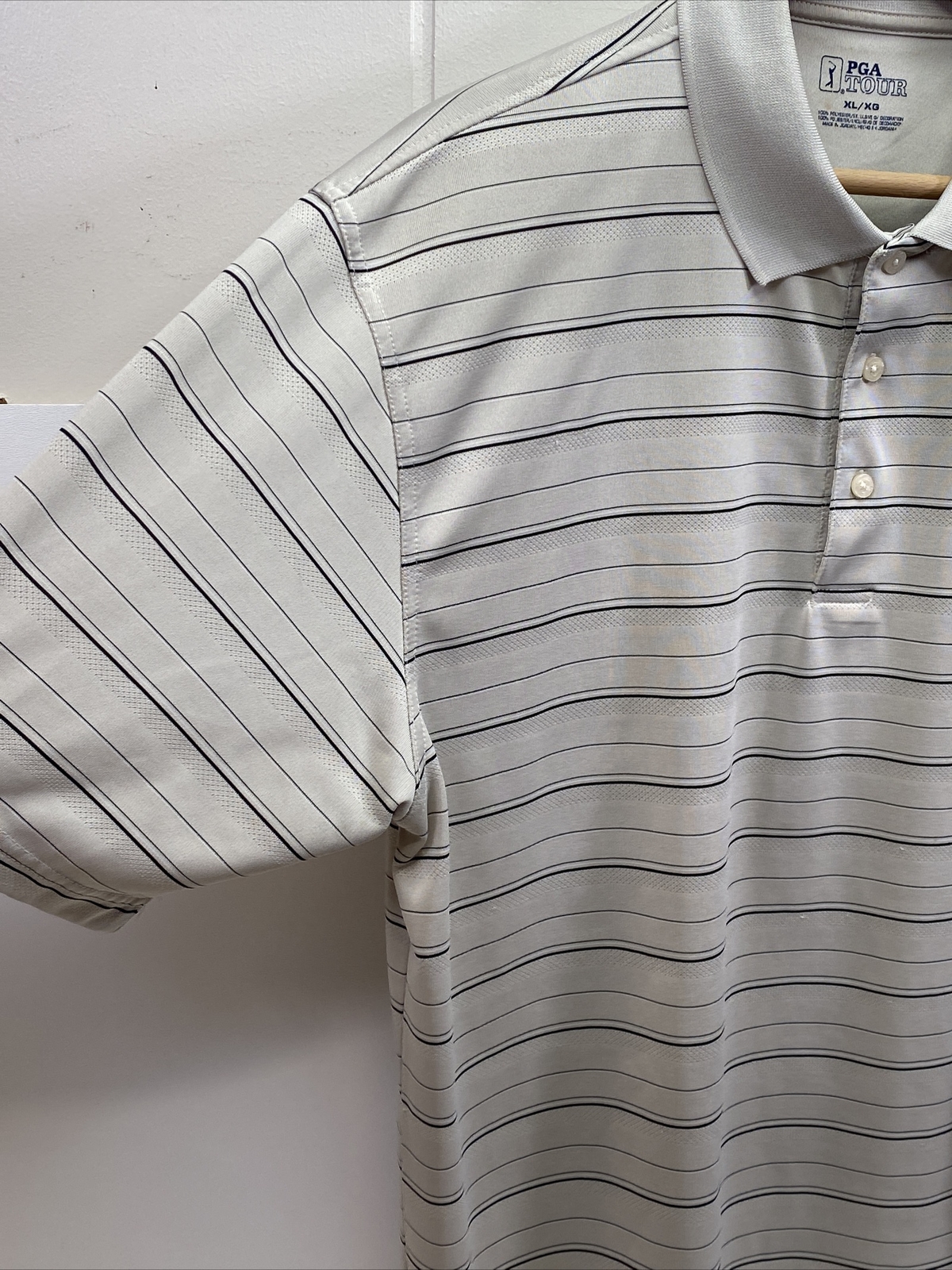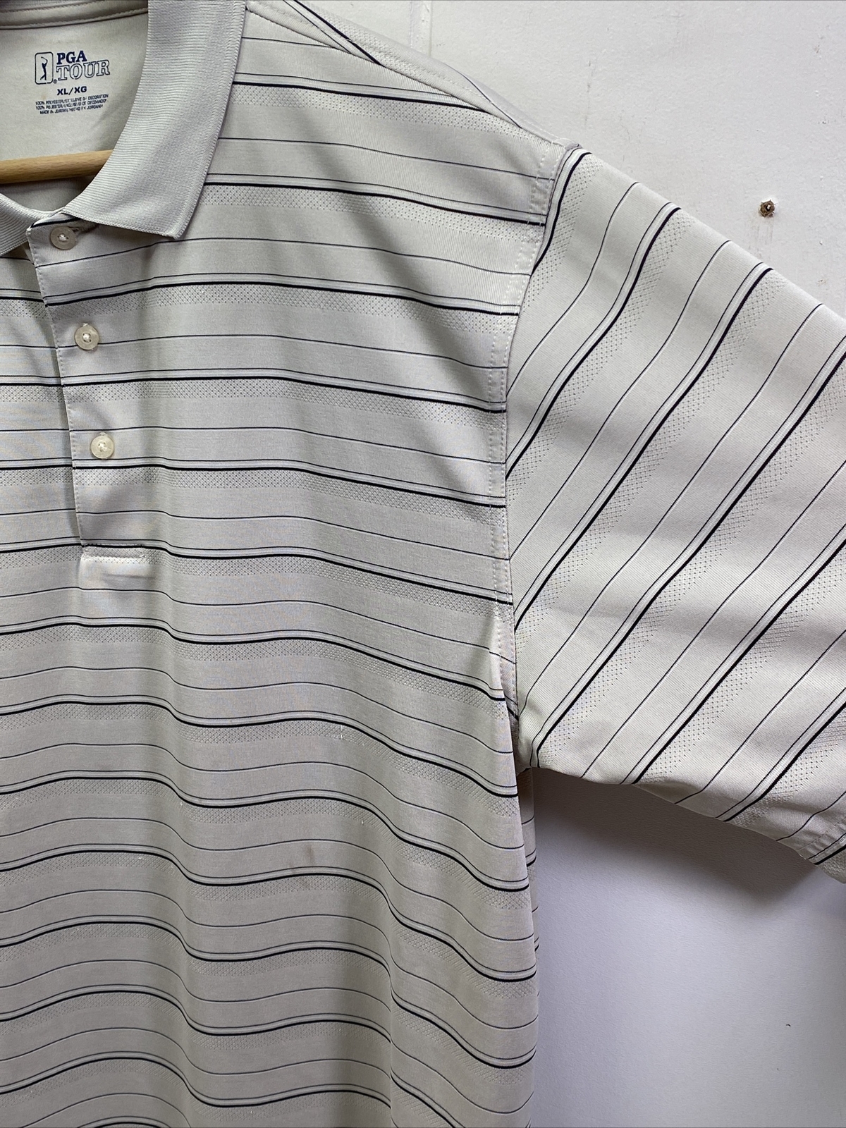 как выглядит PGA Tour Airflux Mens XL Polo Shirt Tan Striped Short Sleeve Golf Performance фото
