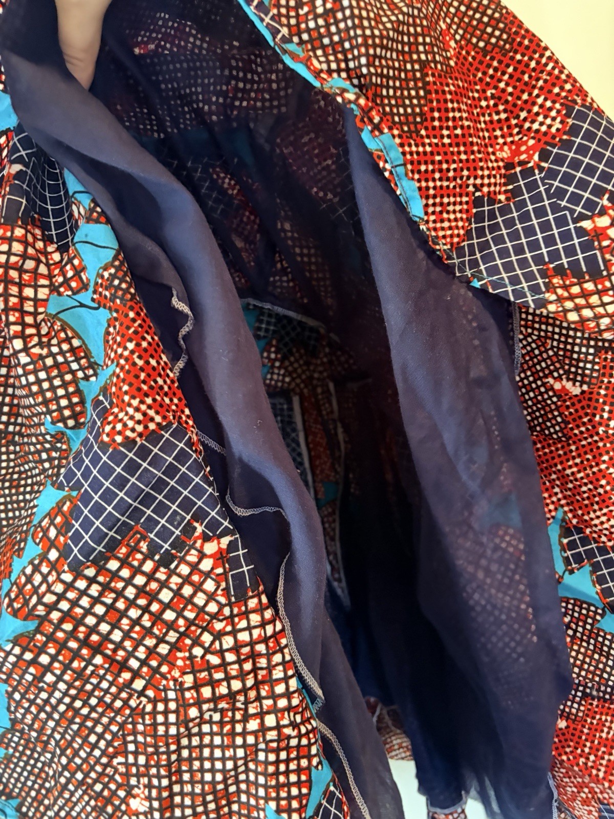 как выглядит Handmade African Wax Print Dress Fit Flare Teal Red Geometric M Ankara Style фото
