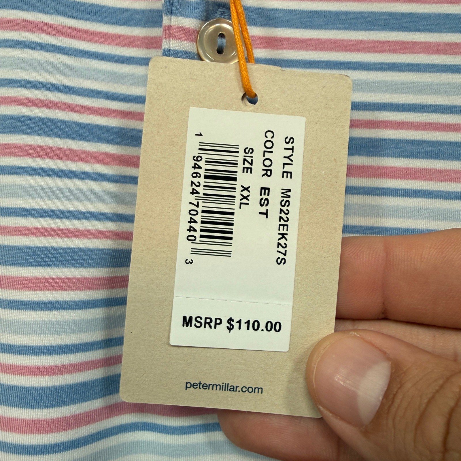 Peter Millar RARE Summer Comfort Polo Shirt Men XXL Pink Blue Striped NEW