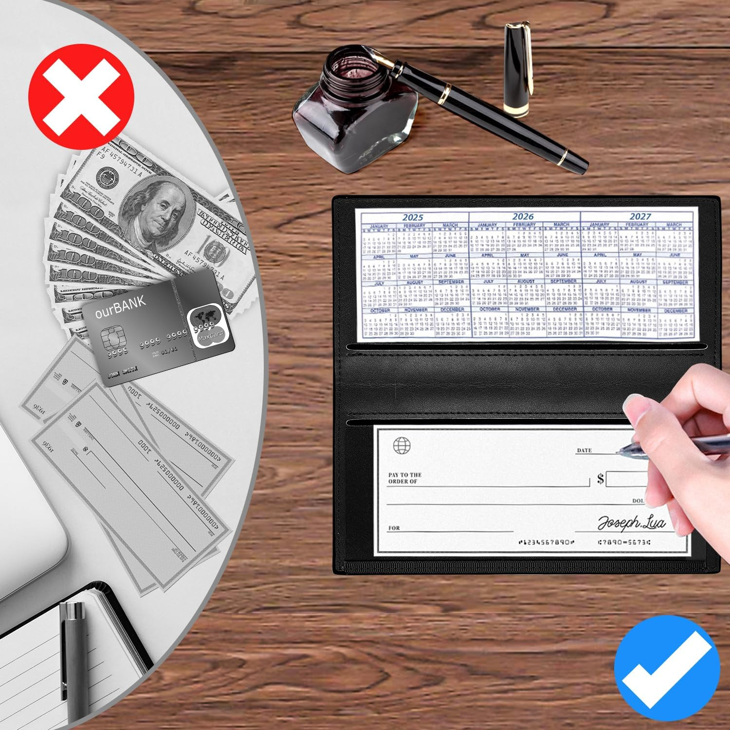 CASMONAL Premium Leather Checkbook Cover for Men and Women Checkbook Holder Wall