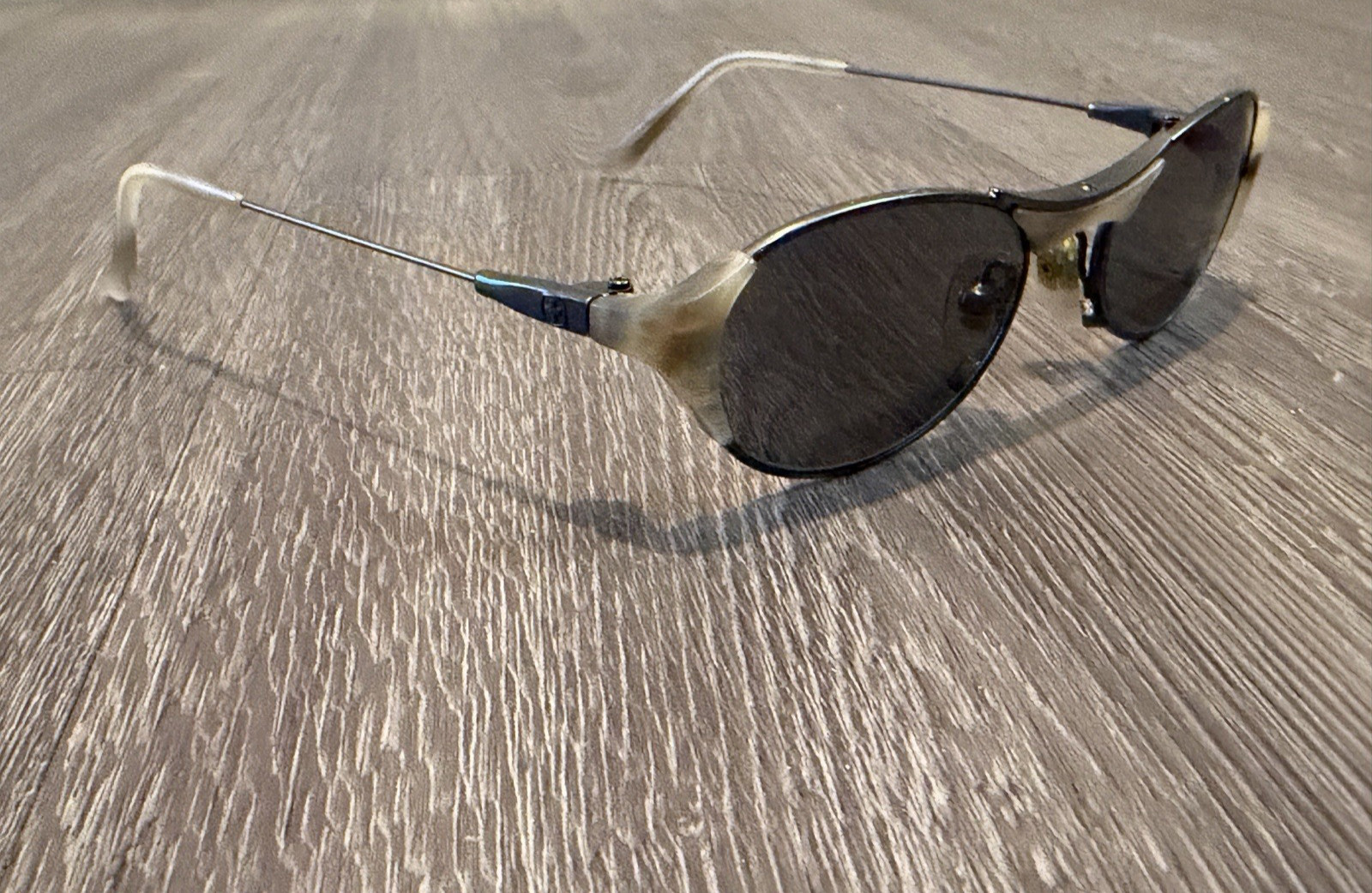 как выглядит Swiss Made Vintage VTG Metal Oval Sunglasses with Acetate Horn Accents фото