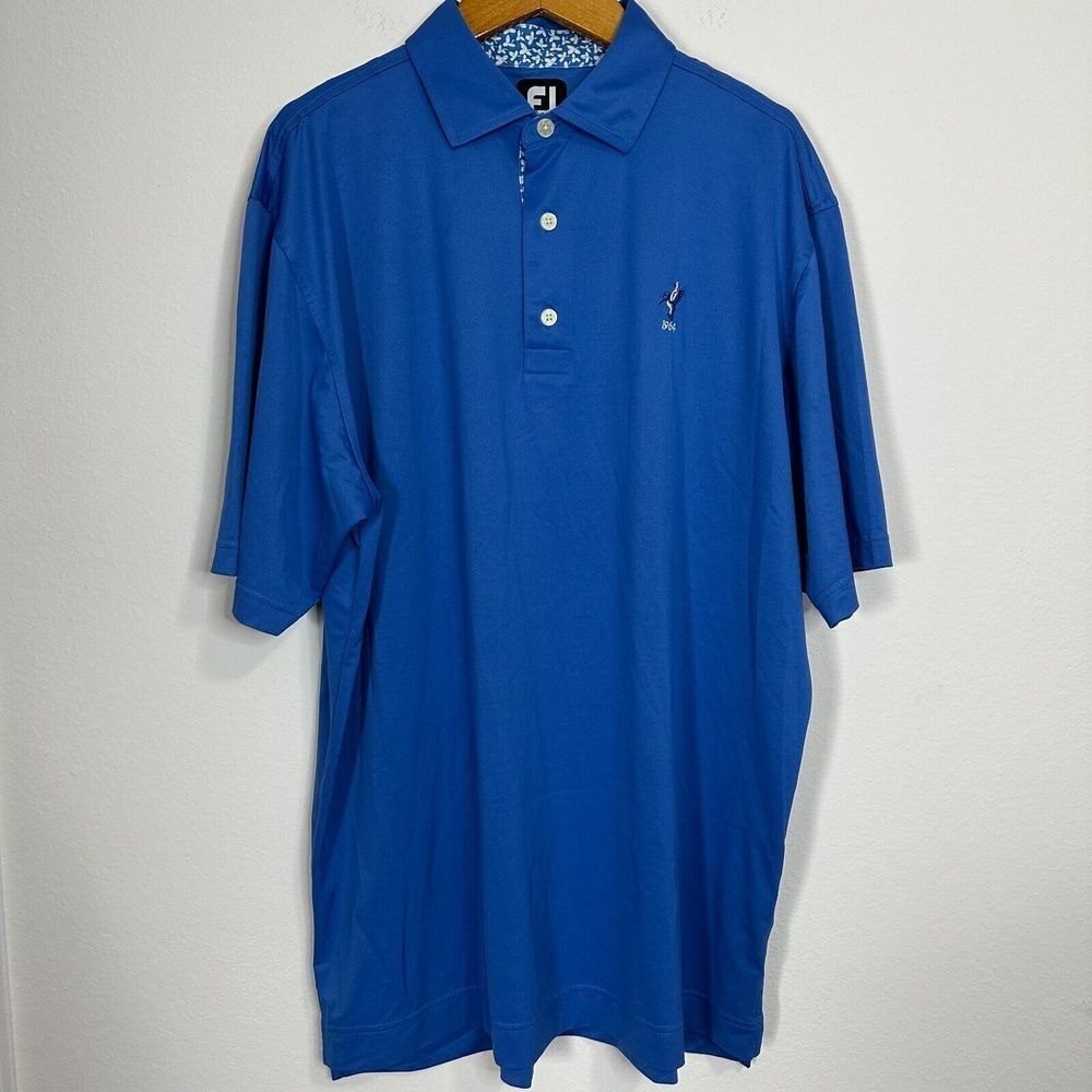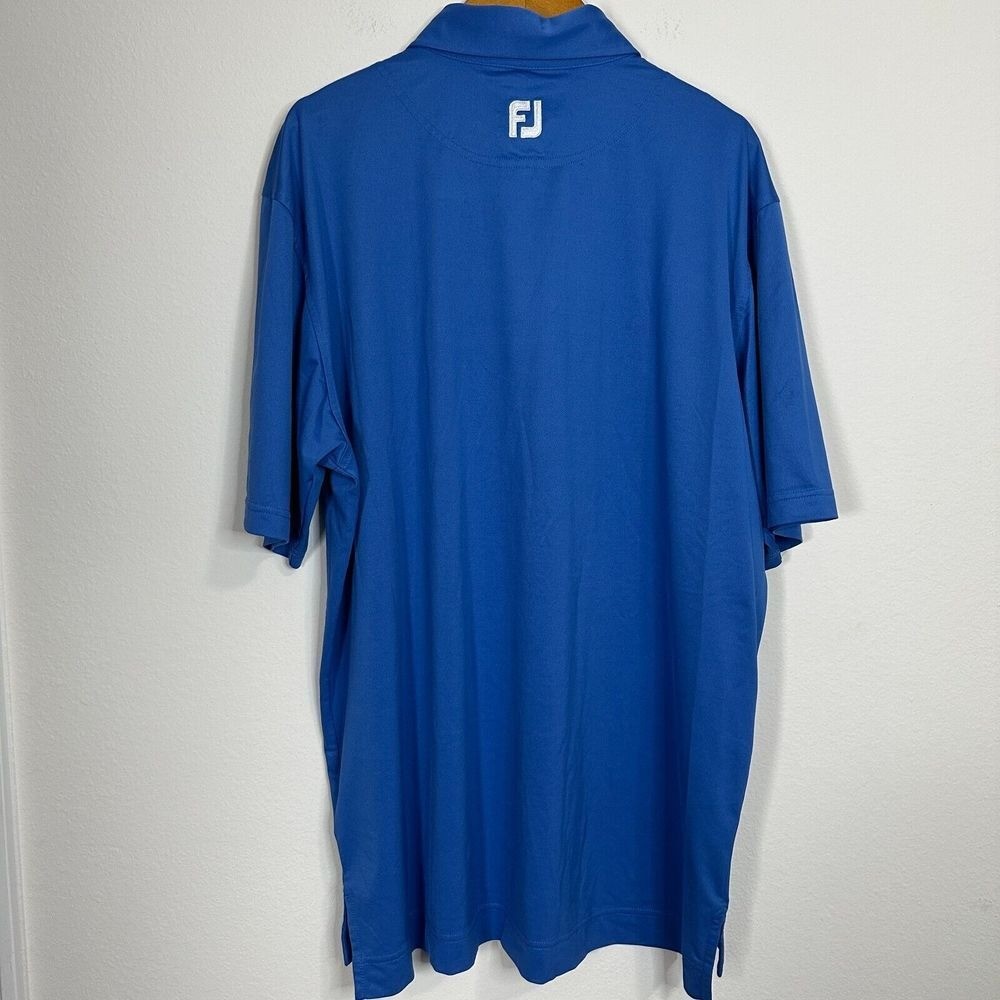 как выглядит Footjoy Blue Short Sleeve Golf Polo Shirt Size L Large Logo FLAW фото