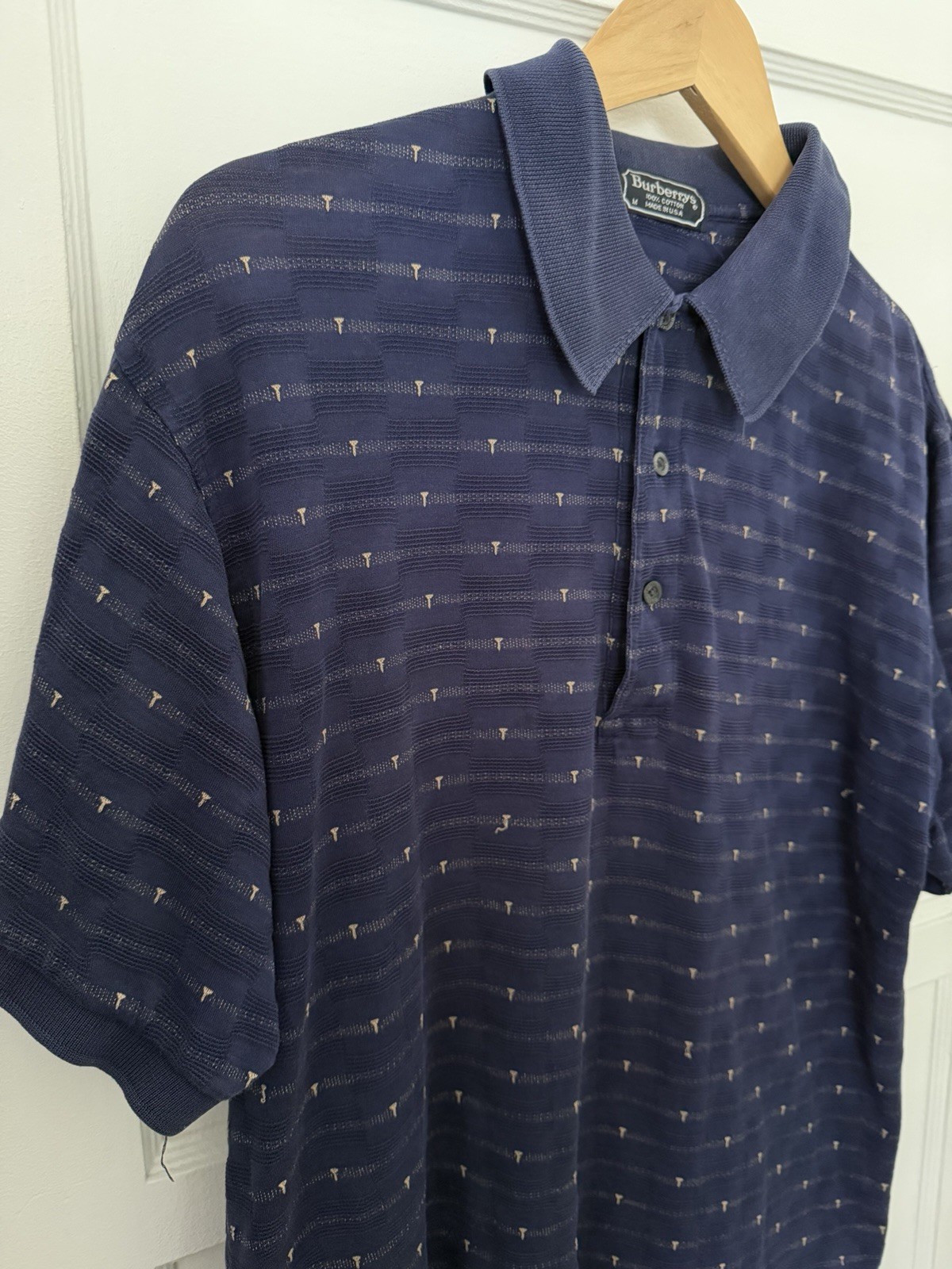как выглядит BURBERRYS Navy Blue Burberry Golf Tee Polo Shirt Preppy Size M USA VTG 90s фото