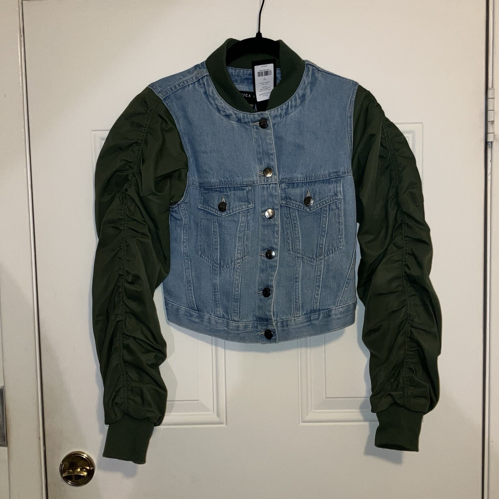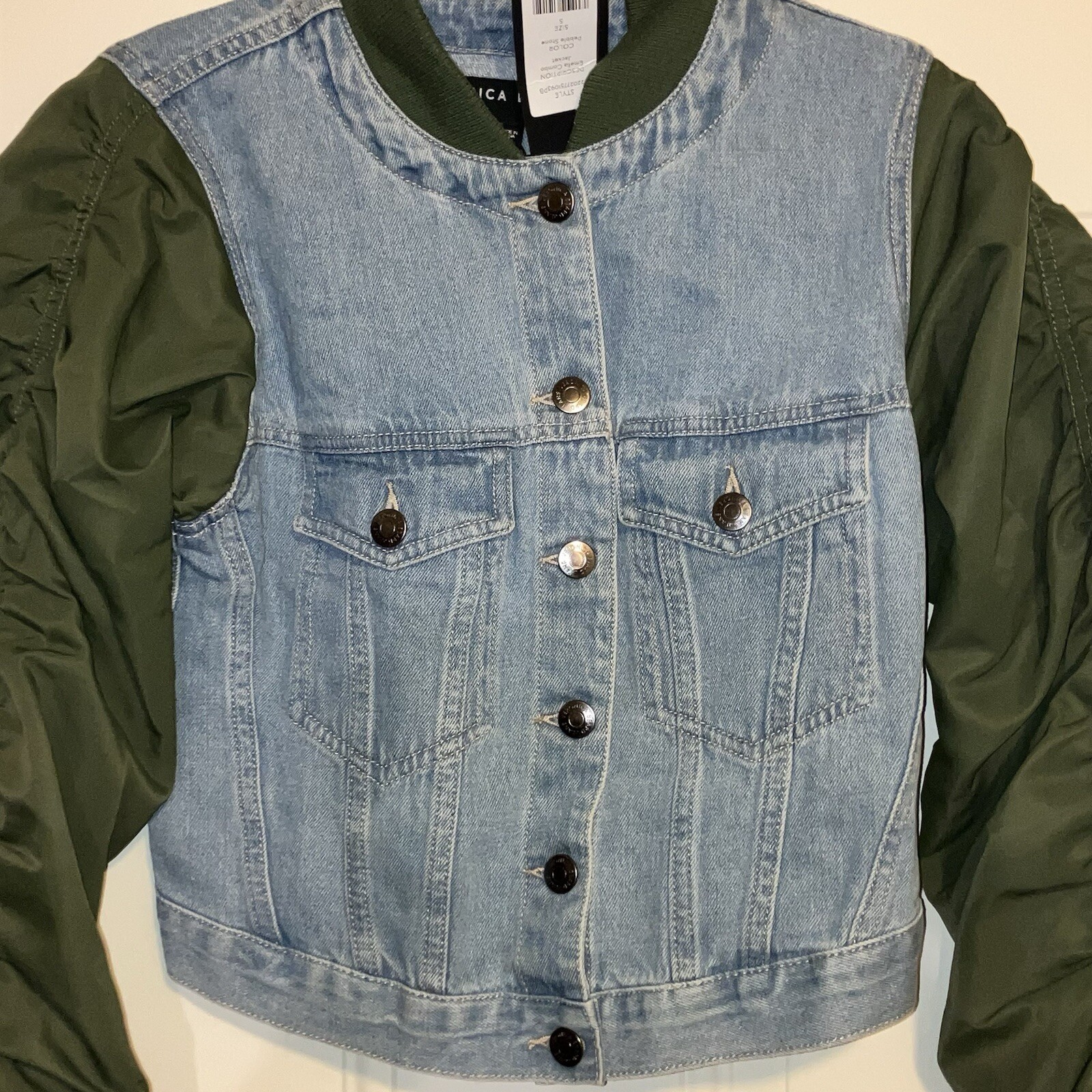 Veronica Beard Emelia Combo Jacket Size S Jeans Satin Blue/green All Season