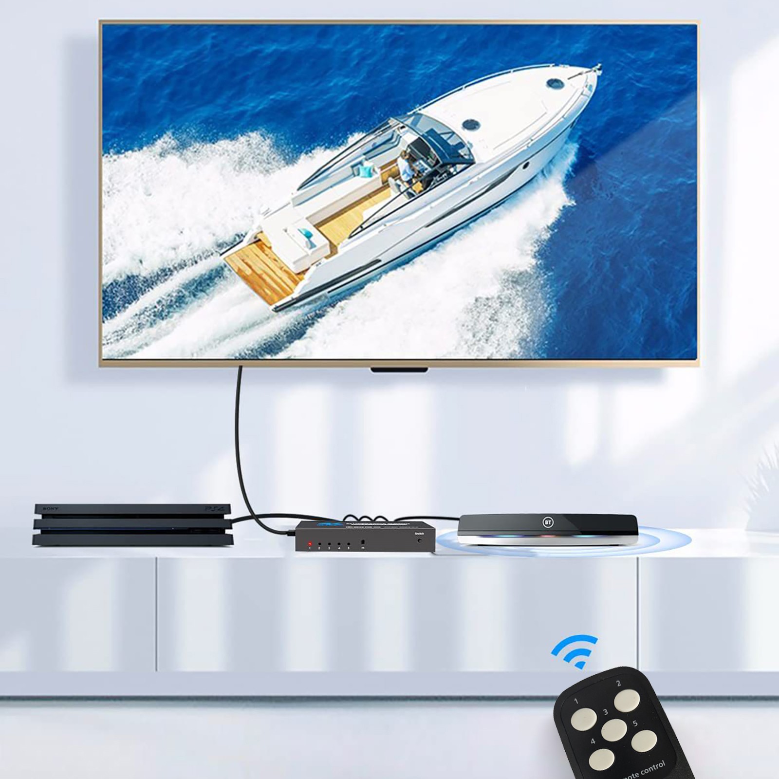 как выглядит 5 in 1 Out 4K 60Hz 5x1 HDMI Switcher HDMI 2.0 Switch with IR Remote Control фото