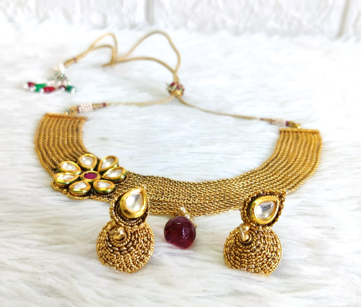 • Vintage Beautiful Golden Necklace Earrings Fashion Artificial Jewelry J297