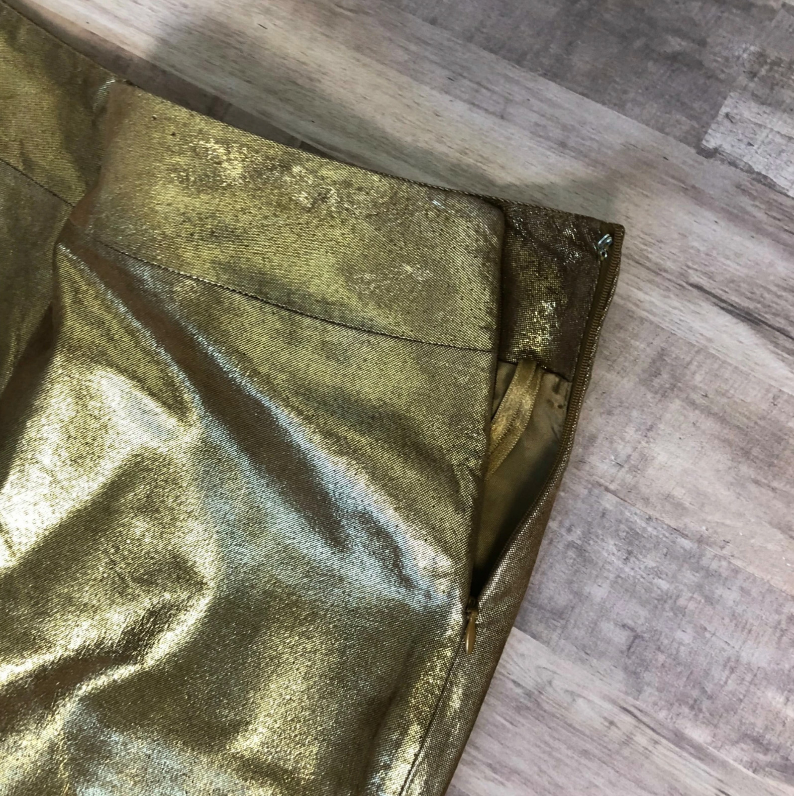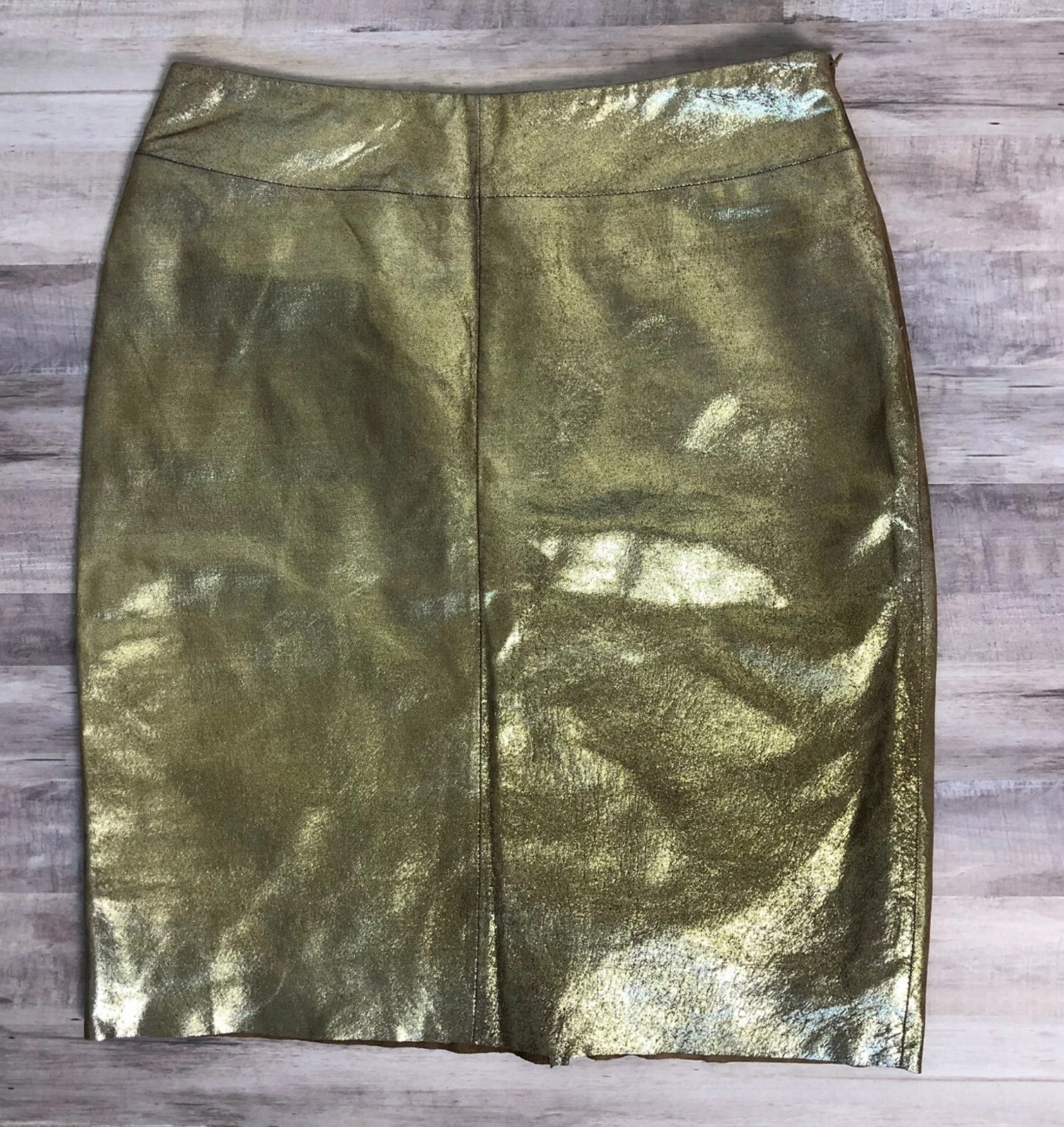 Express Womens Metallic Gold Leather Straight Pencil Skirt Size 5/6 Vintage