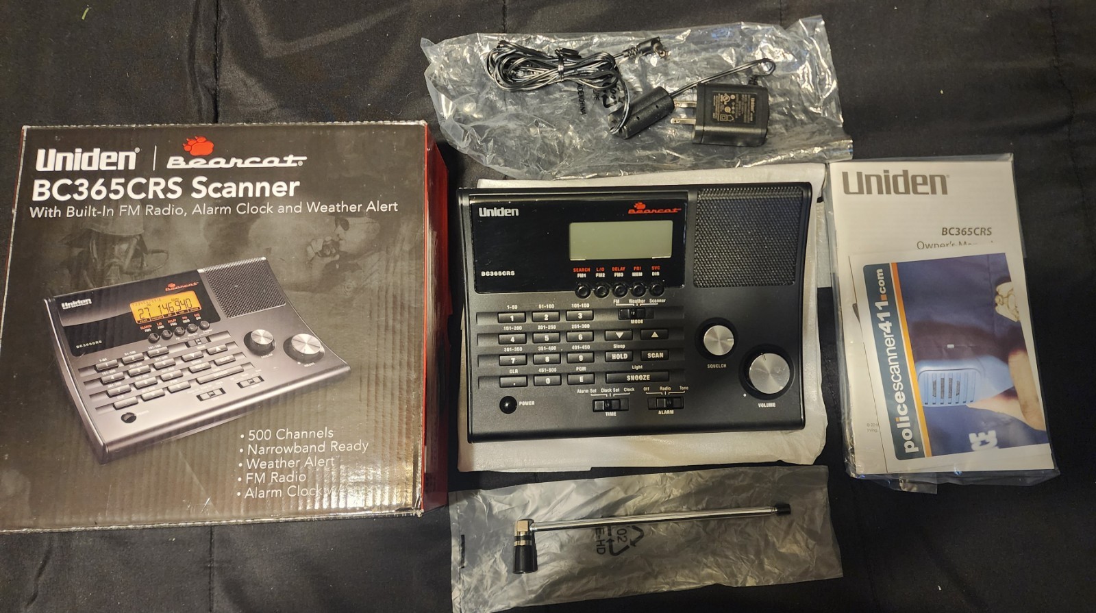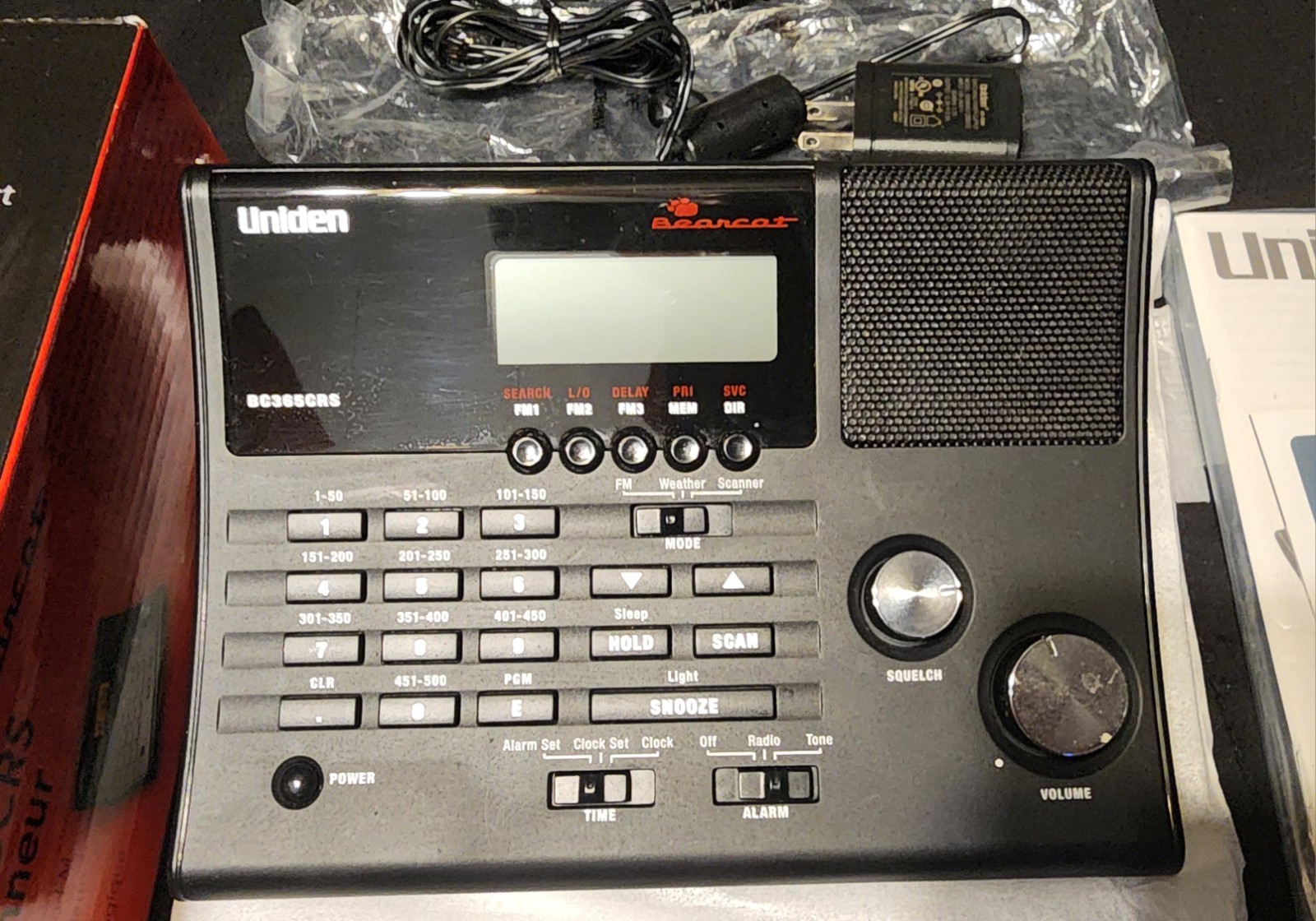 Uniden Bearcat BC365CRS Scanner, 500 Channels, FM Radio, Alarm Clock, Used.