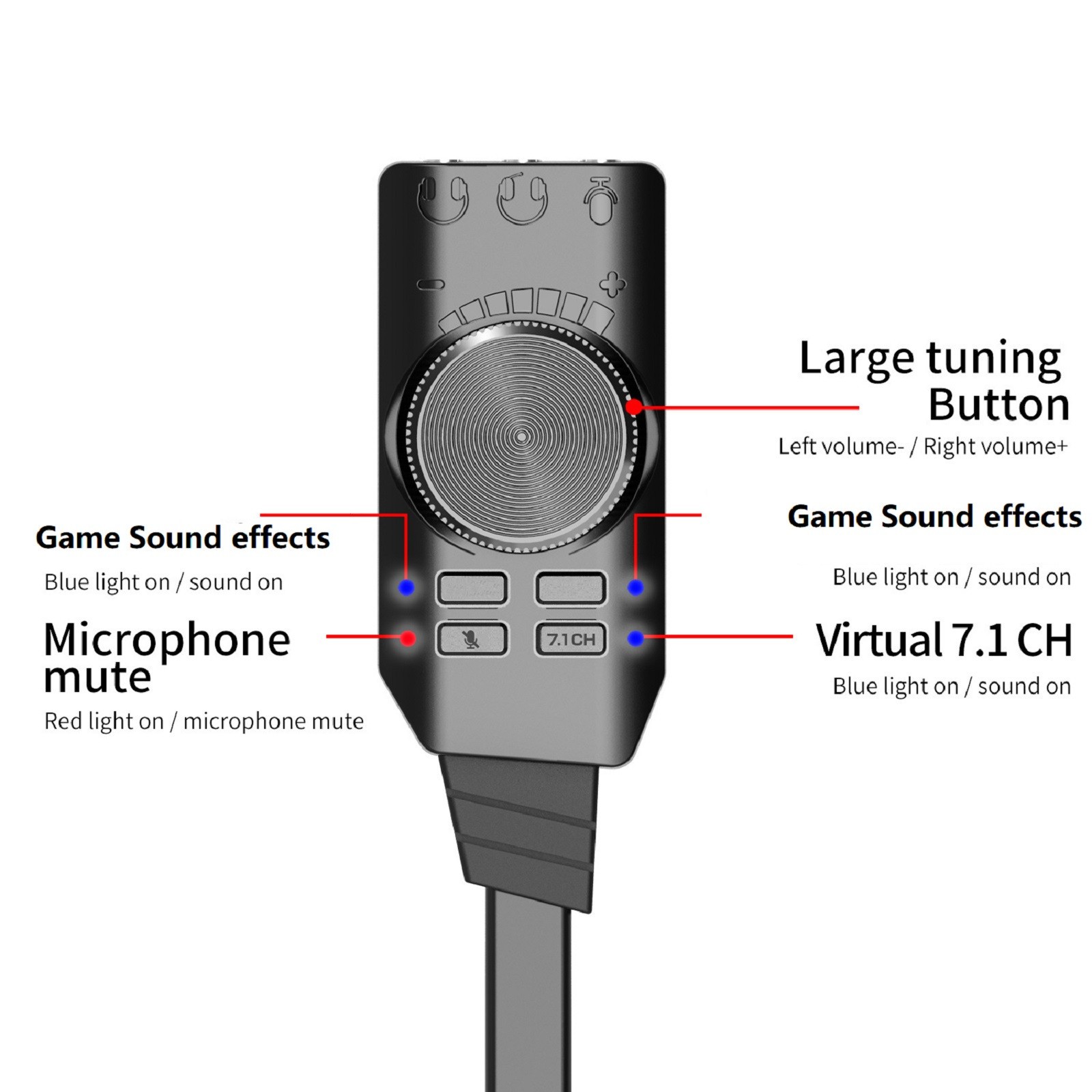 Black USB External Sound Card Virtual 7.1 Channel Adapter Plug For PC Laptop PS5