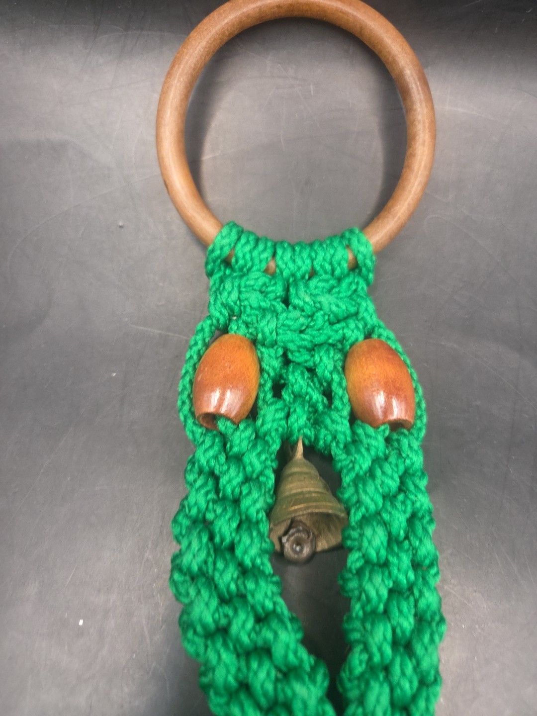 Vintage Macrame Owl Bell Door Decoration 1970s Fiber Art BoHo Decor