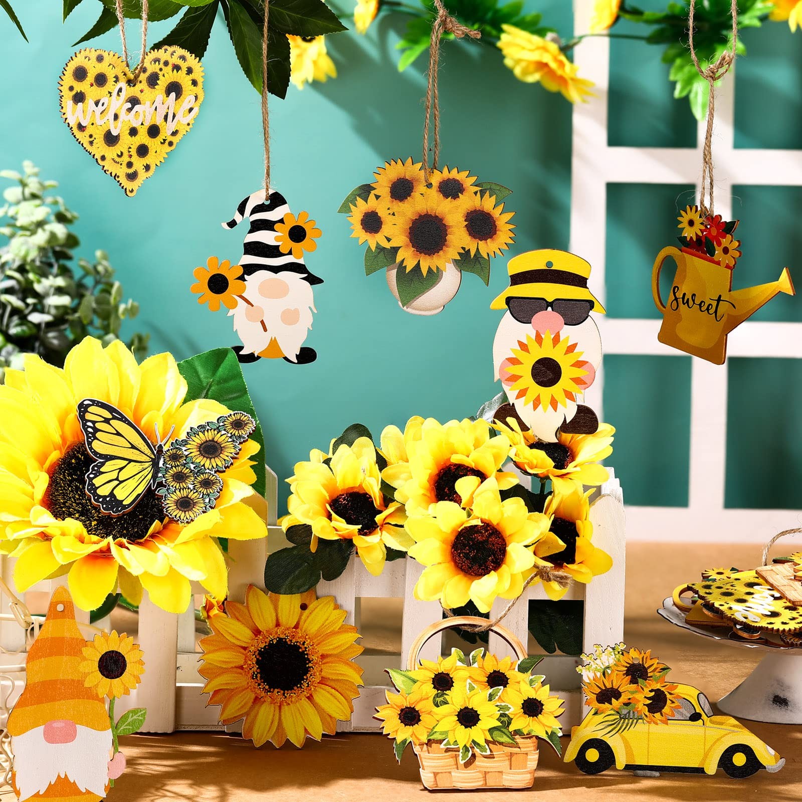 l Summer Sunflower Gnome Tree Ornament Spring Wooden Hanging